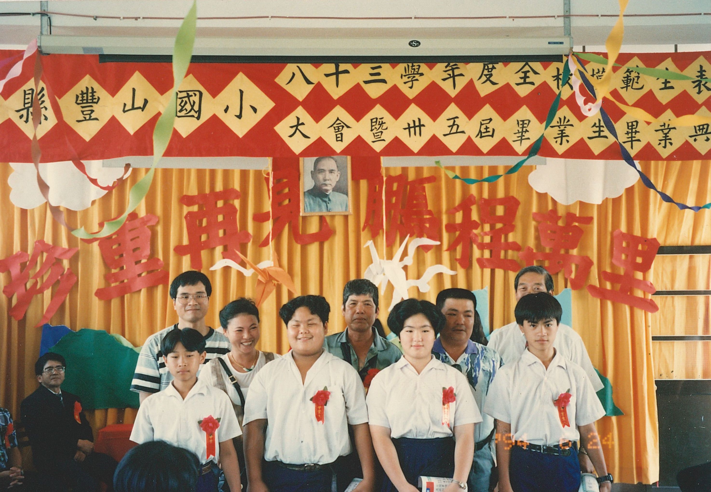 豐山國小第三十五屆畢業典禮。照片拍攝的時間為西元1994年6月24日(民國83年),照片提供者為邱美華女士(後排左側數來第二位母親),此為兒子就讀豐山國小的畢業照片(前排左側數來第二位為邱美華的兒子)。另照片後排右二為劉志強,為今日「劉記碗粿」第二代。