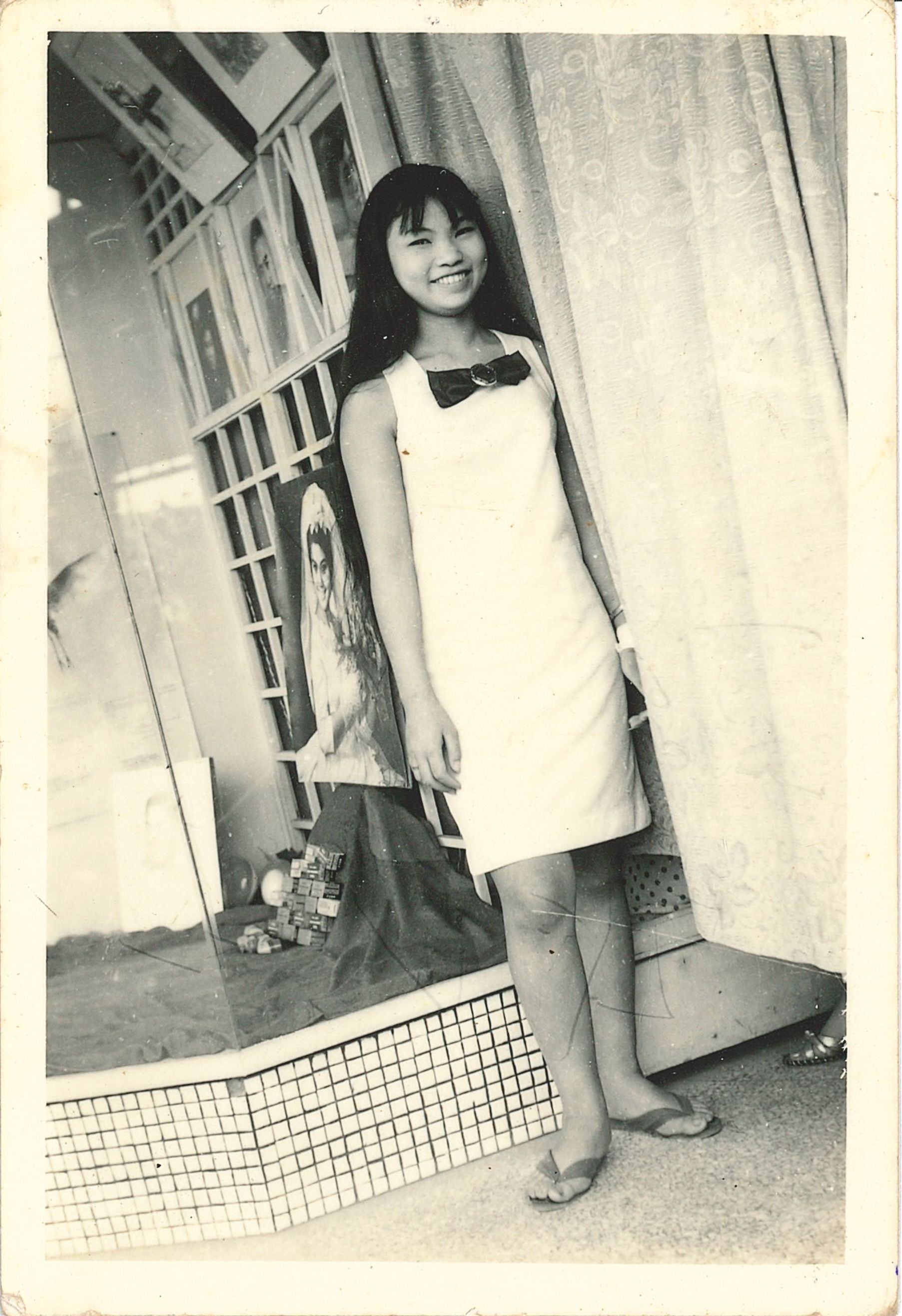 相館拍攝獨照。照片拍攝的時間大約為1968年(約民國57年),照片提供者為邱美華女士,也是照片中站立被拍攝的年輕少女,年紀約十六歲。年輕時候的邱美華十三歲就去高雄幫人煮飯幫傭,因為是初領到第一份現金(老闆都會把她的薪水直接寄回老家,所以她工作一段時間仍沒有領過現金,此時為快離開高雄時),她便想說已經到高雄工作了一段時間還沒有拍過照片,便決定去照相館拍照寄回去給家裡。照片中的她身穿無袖白色洋裝,穿著夾腳拖鞋,微笑地面對鏡頭。後方還可見到照相館中所擺設的婚紗照片、底片包裝紙盒、人像攝影作品等物件。
