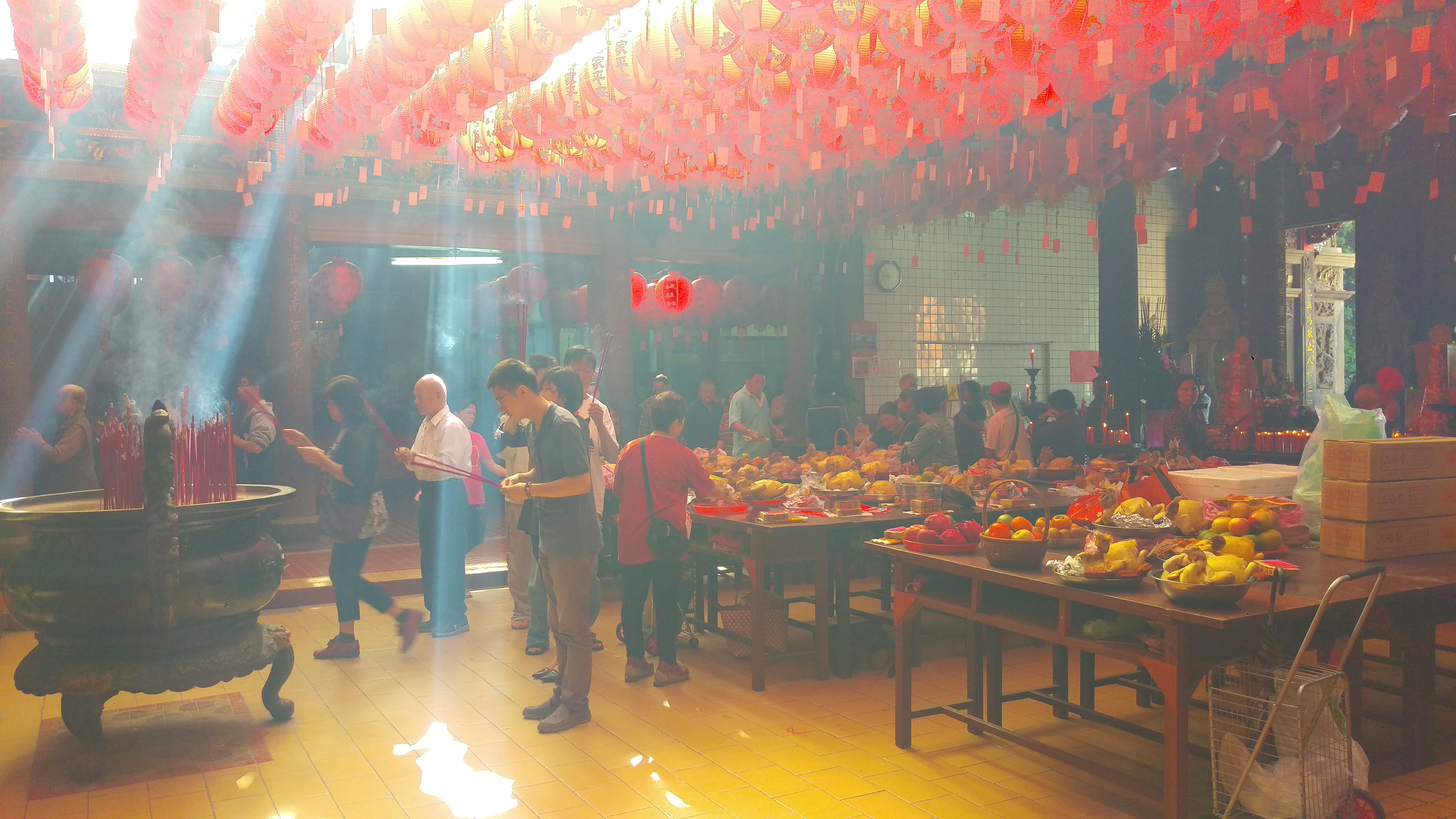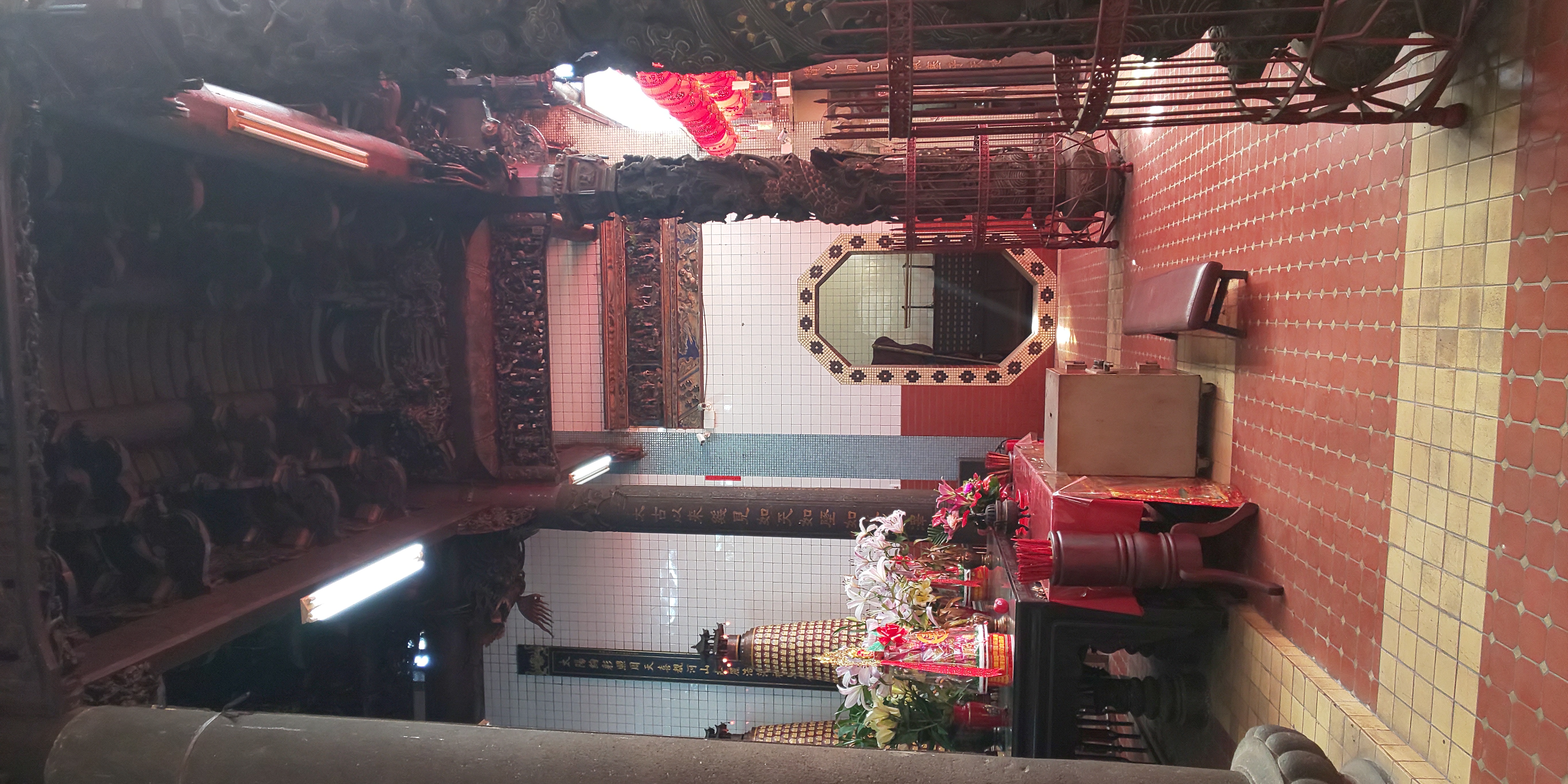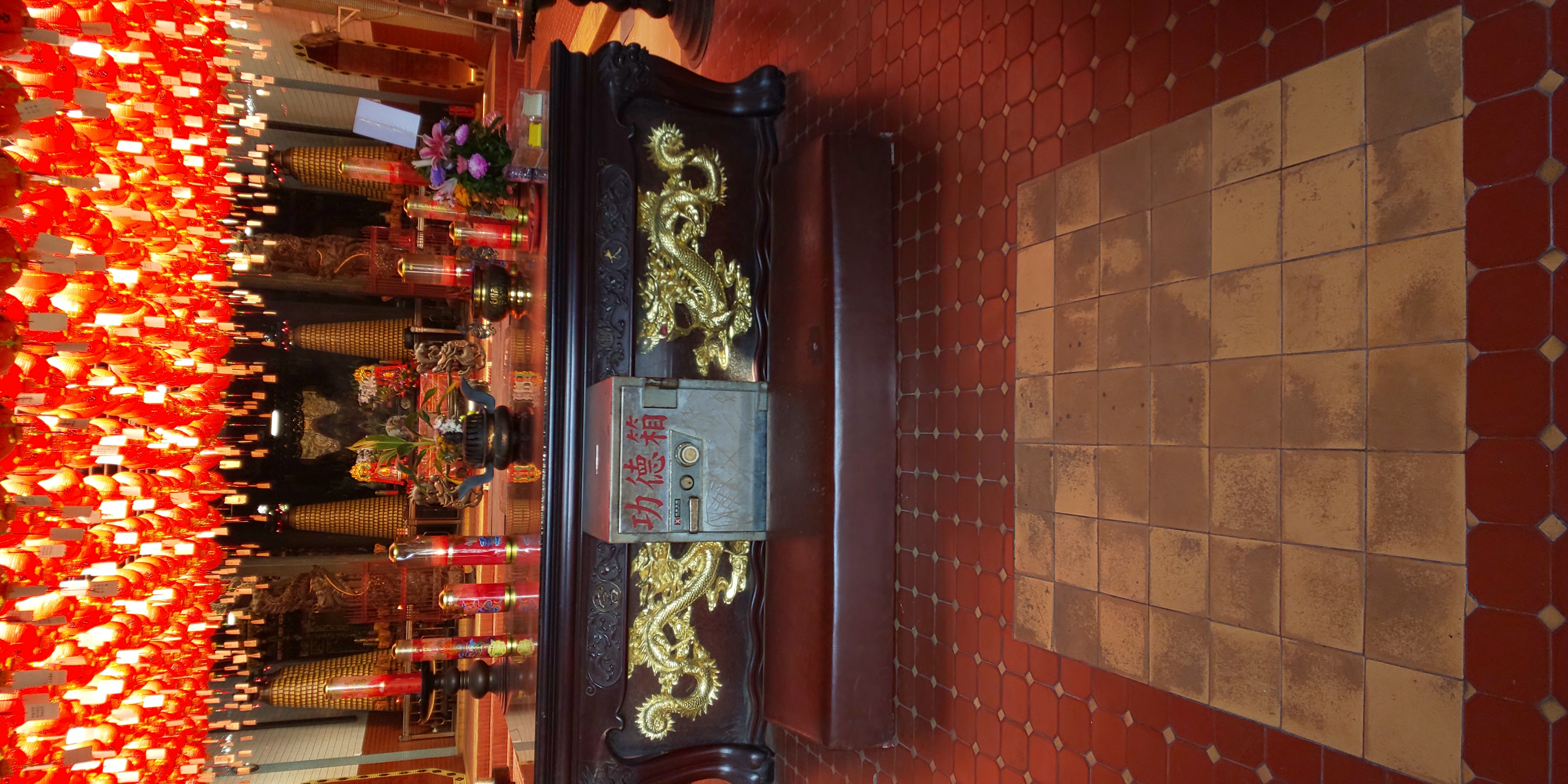 圖片所在地是位於關西鎮太和宮,拍攝時間是2019年(民國108年)。太和宮於1981年(民國70年)代初重新改建時,以黃色磁磚鋪設「禮砧」、「天心」、「拜砧」,以便讓民眾分別出供品與祭祀區域。圖片一是禮砧,位置於三官大帝前方,為民眾放置供品區域。圖片二是天心,位置於廟宇正中心;現在為民眾祭祀方便,變成主要祭祀供品區放置位置。圖片三是拜砧,祭祀區;拜砧又稱為拜墊,是進行跪拜禮神和誦經、拜懺時的器具,通常放置於供桌之前,舉行法會、祭典時,則再放置在隨拜席中,以供隨拜者進行跪拜之禮。