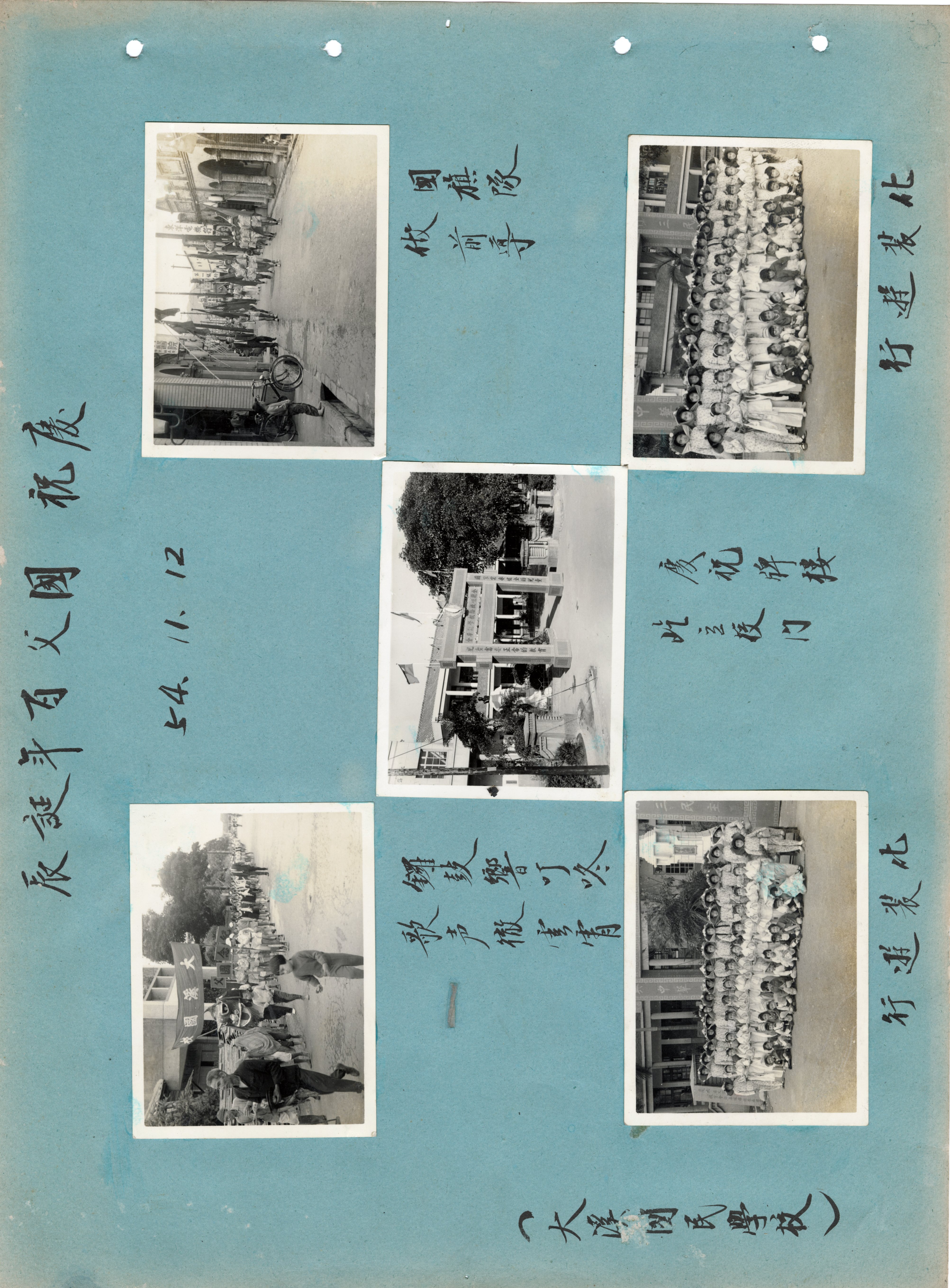 民國54年為紀念孫中山100歲生日,大溪舉行紀念踩街遊行,大溪國小為隊伍前導,國小學生化妝,角色扮演成西洋紳士、農家婦女、持壽桃仙女,製作舞獅一同慶祝。
