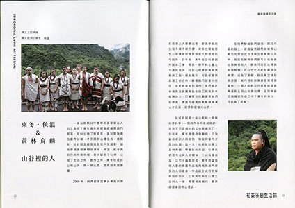在臺北生活多年的東冬,在開始獨立創作之後回到故鄉銅門部落,並在西元2014年成立兒路創作藝術工寮,帶領一群離家去臺北讀書的部落青年,回到部落在山林裡學習傳統樂舞與工藝。西元2009年,慕谷慕魚的爆紅造成部落原有的寧靜被打擾,東冬開始思考一個傳統部落如何面對和解決當代問題,他藉由不同媒介嘗試探討人與自然、傳統與當代之間的關係,以錄像藝術和行為藝術引領大家重新詮釋山與人的互動關係。〈山谷裡有風〉這個作品是由東冬及其學生黃林育麟以竹子編製而成,作品設計成可拆解的樣式,就像在山裡生活的人們,時而遠行時而回到山裡,也期待未來能成為銅門部落的入口意象。