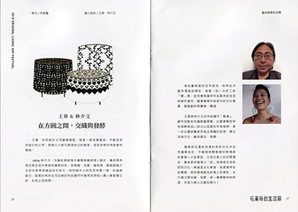 王偉,你好設計公司創意總監,你好設計公司是一家從事產品、平面及室內設計的公司。林介文Labby,來自花蓮紅葉部落太魯閣族藝術家,擅長利用日常生活中常見的織物材料,如棉線、毛線等,創造再現的活力與樣貌。本次兩人合作的創作「辦桌」,創作地點在花蓮縣富里鄉,以富里鄉的特色發酵食品─泥火山豆腐乳作為發想,以圓形餐桌作為視覺呈現,結合生活與文化。