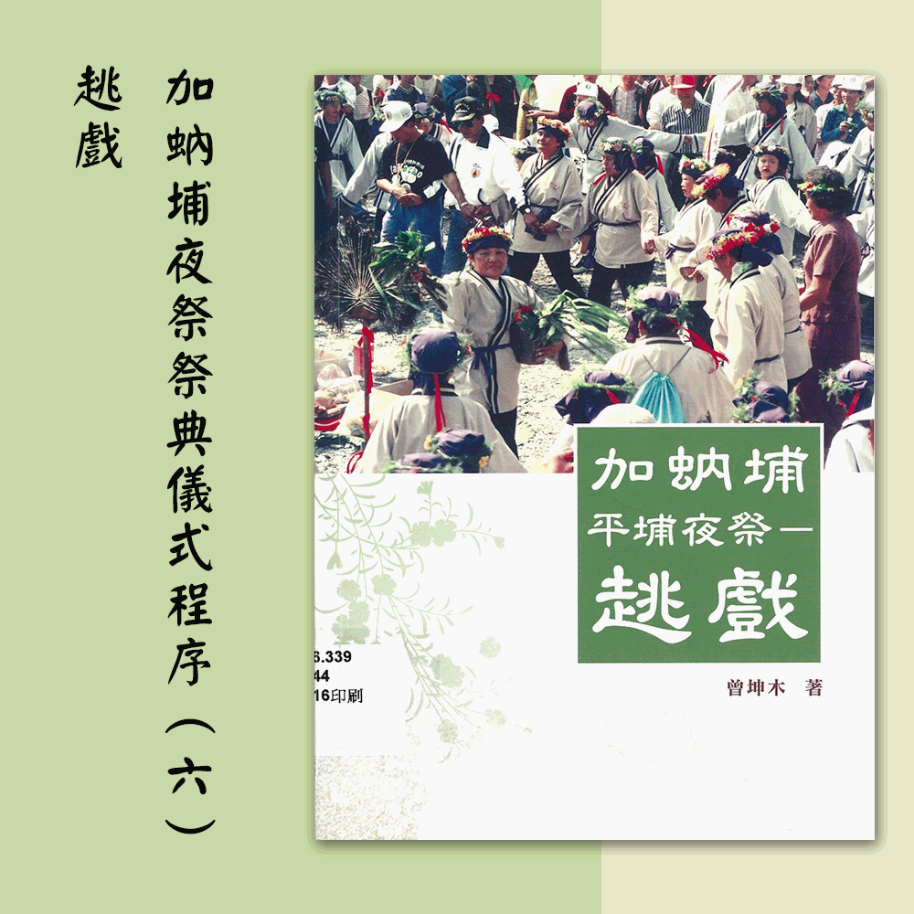 《加蚋埔平埔夜祭-趒戲》一書敘述有關加蚋埔平埔夜祭儀式中的「趒戲」程序,趒戲具體意義是向祖靈阿姆祝壽的意思,趒戲由當地泰山國小學童擔任演出,亦是為了鼓勵文化傳承之用特別安排演出,與「跳戲」不同的是,「跳」僅是簡單配合音樂節拍舞動身體,然而「趒戲」卻是在舞動身體之外,還要自己唱歌,「趒」的身體擺動較細膩且帶有頻率高亢奮的情緒,即是含有神明附身的感覺。