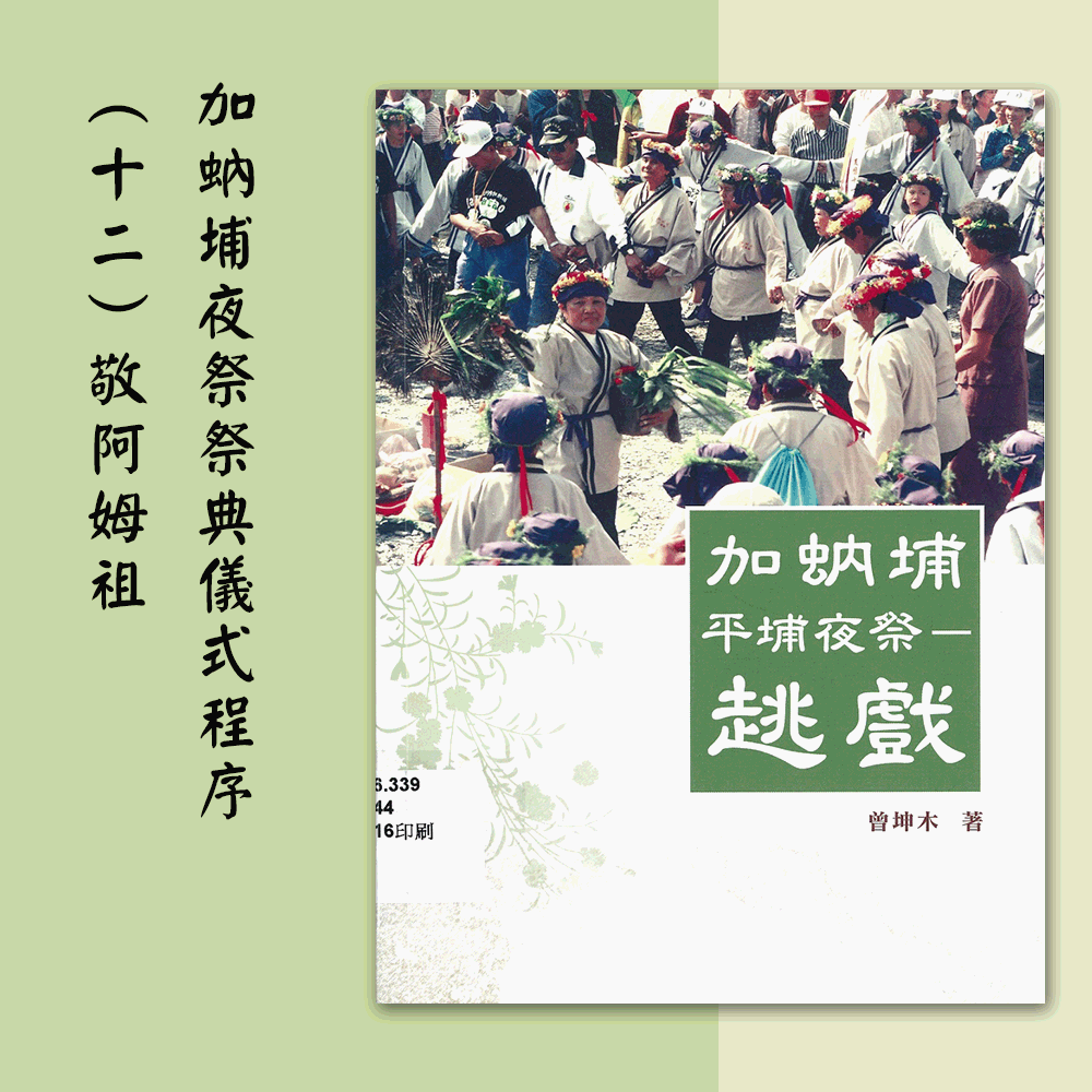 《加蚋埔平埔夜祭-趒戲》一書敘述有關加蚋埔平埔夜祭儀式中的「敬阿姆祖」程序,進行完轉豬羊儀式之後,尪姨及長老村民一同面向公廨廟朝阿姆祖,稟明敬備豬羊祭品恭請享祭,隨後信眾上香。