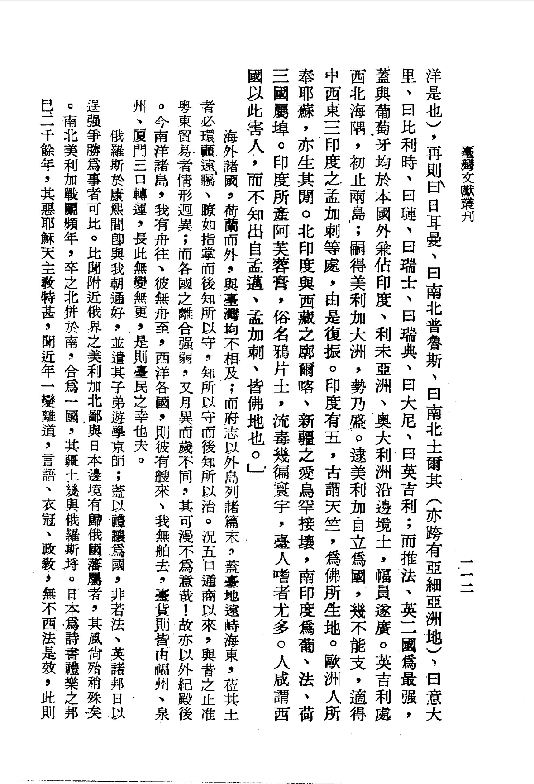 印度所產阿芙蓉膏,俗名鴉片土,流毒幾徧寰宇,臺人嗜者尤多。人咸謂西國以此害人,而不知出自孟邁、孟加剌、皆佛地也。