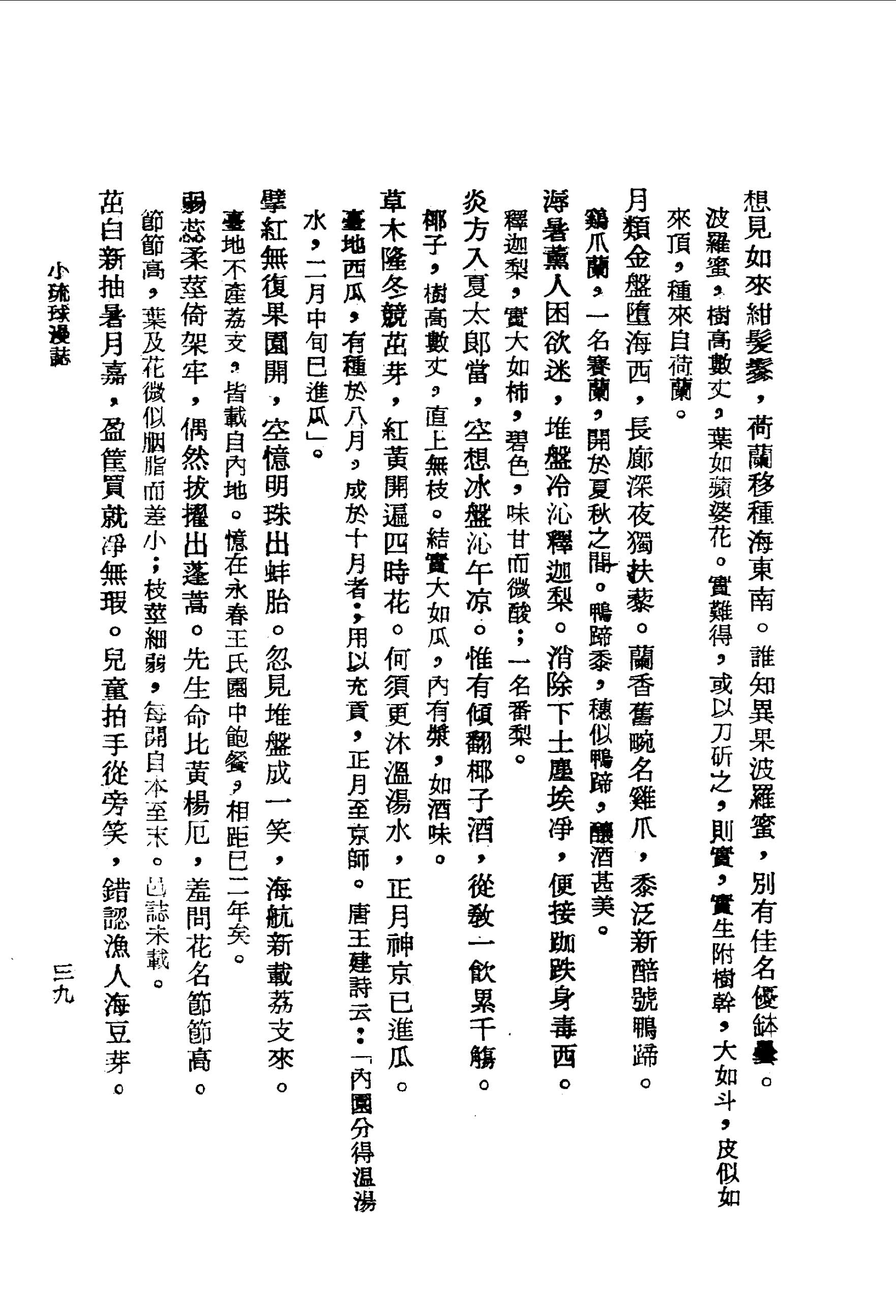 溽暑薰人困欲迷,堆盤冷沁釋迦梨。消除下土塵埃淨,便接跏跌身毒西。釋迦梨,實大如柿,碧色,味甘而微酸;一名番梨。