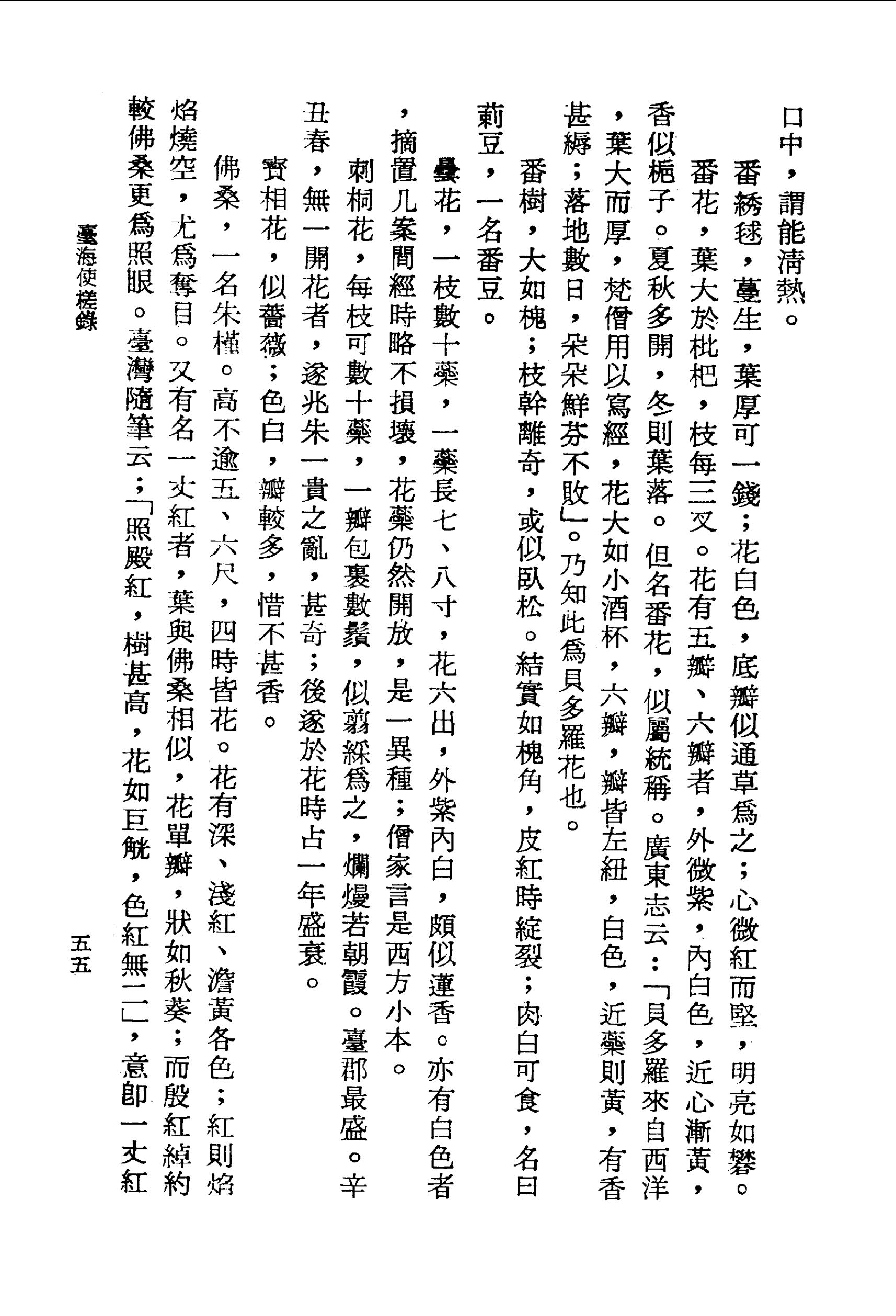 蕉樹,子房相連累,甜美,亦可蜜藏。臺地村舍後,每廣植之,四時皆生,藉以獲利。性寒,婦人產後,每以蕉果少許置兒口中,謂能清熱。