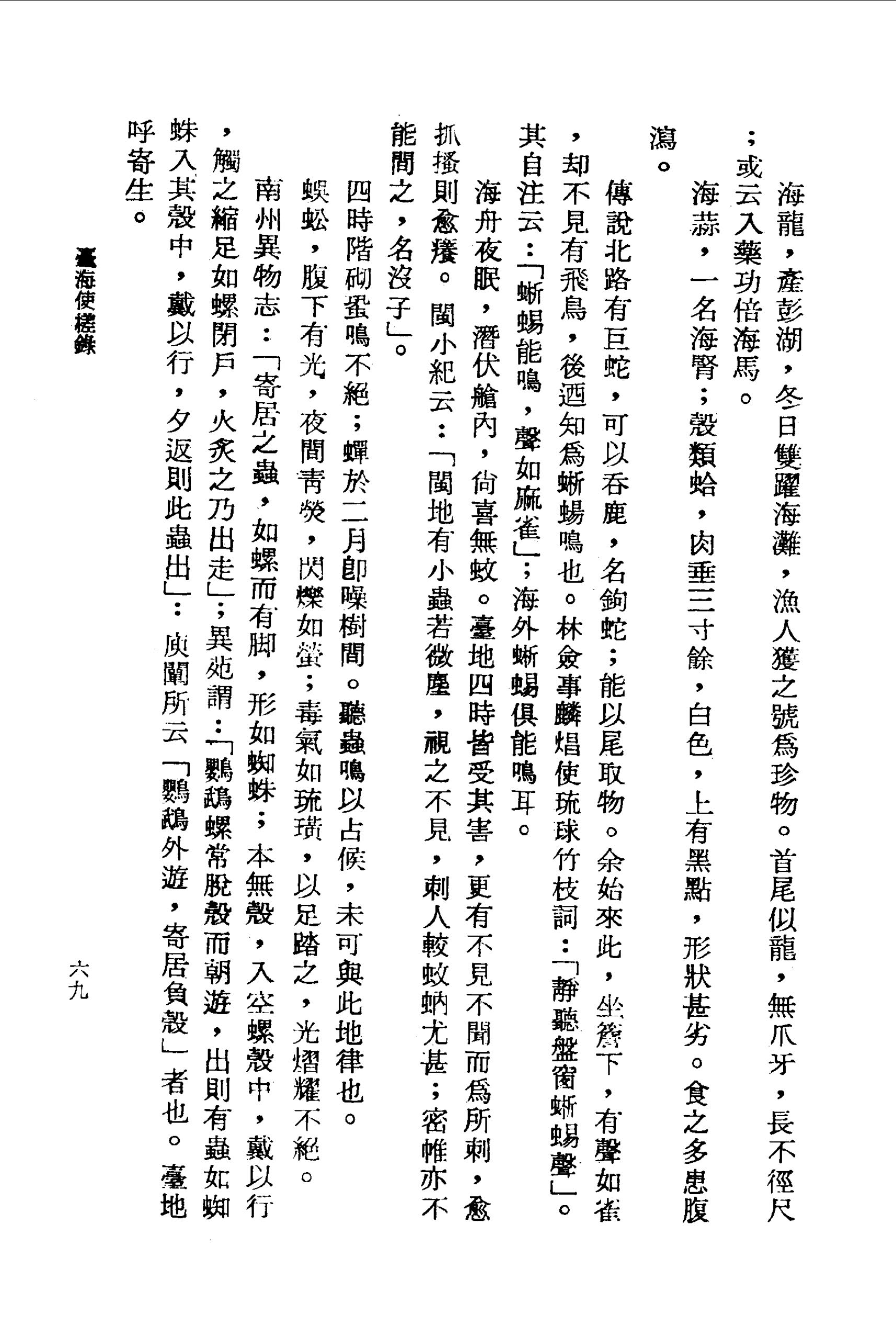 海龍,產彭湖,冬日雙躍海灘,漁人獲之號為珍物。首尾似龍,無爪牙,長不徑尺;或云入藥功倍海馬。