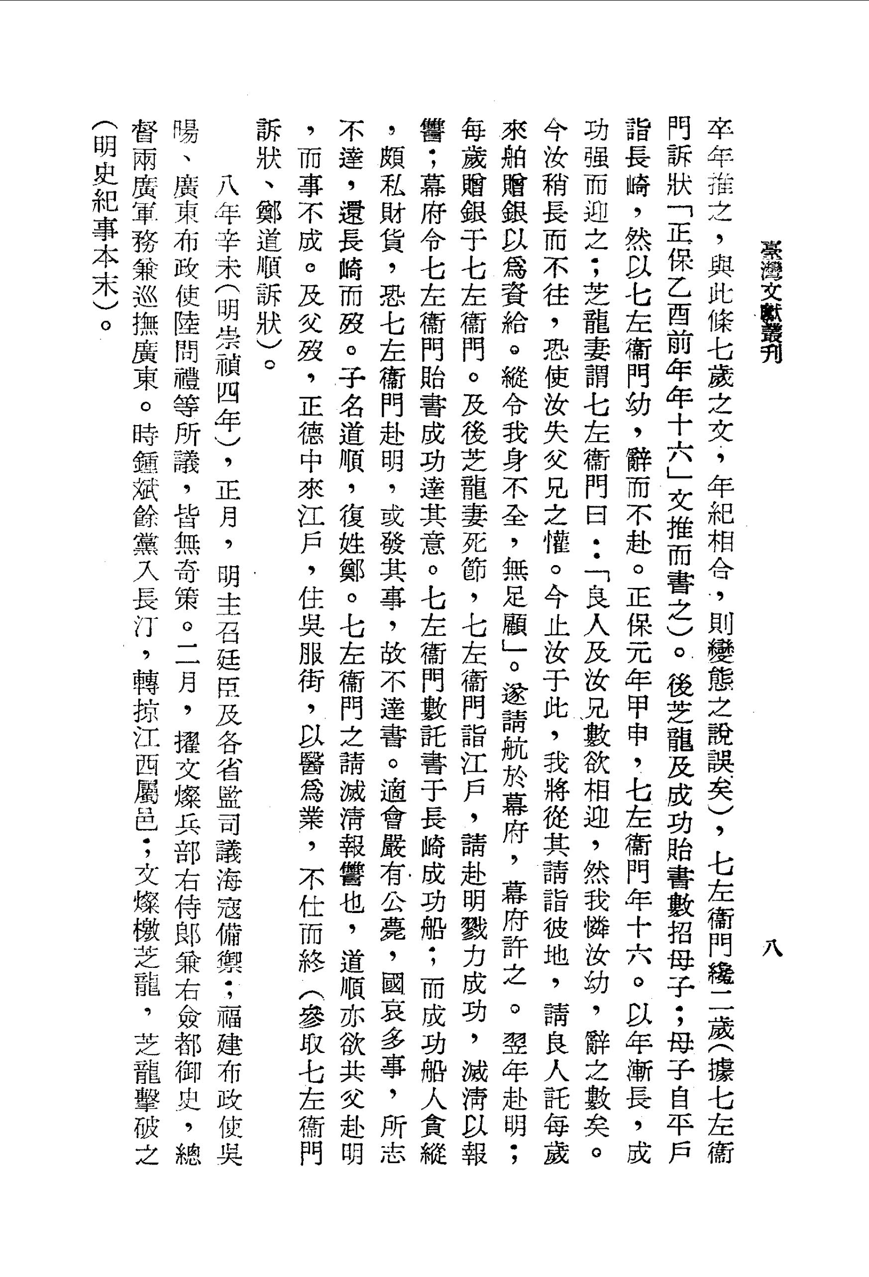 七左衛門之請滅清報讎也,道順亦欲共父赴明,而事不成。及父歿,正德中來江戶,住吳服街,以醫為業,不仕而終(參蝦七左衛門訴狀、鄭道順訴狀)。