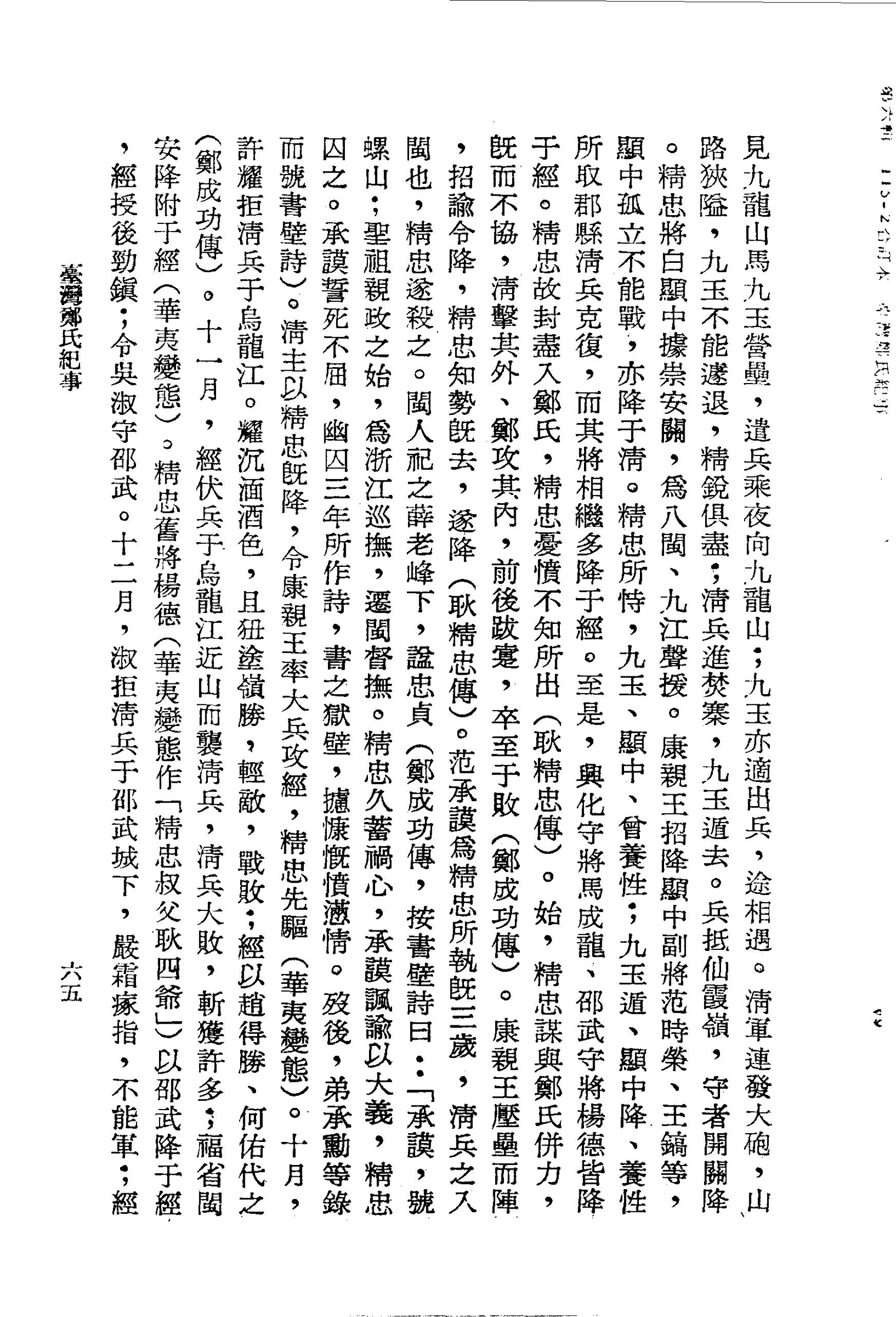 十二月,淑拒清兵于邵武城下,嚴霜瘃指,不能軍;經召還淑,進忠宵遁,應麟奔死潮州(鄭成功傳)。