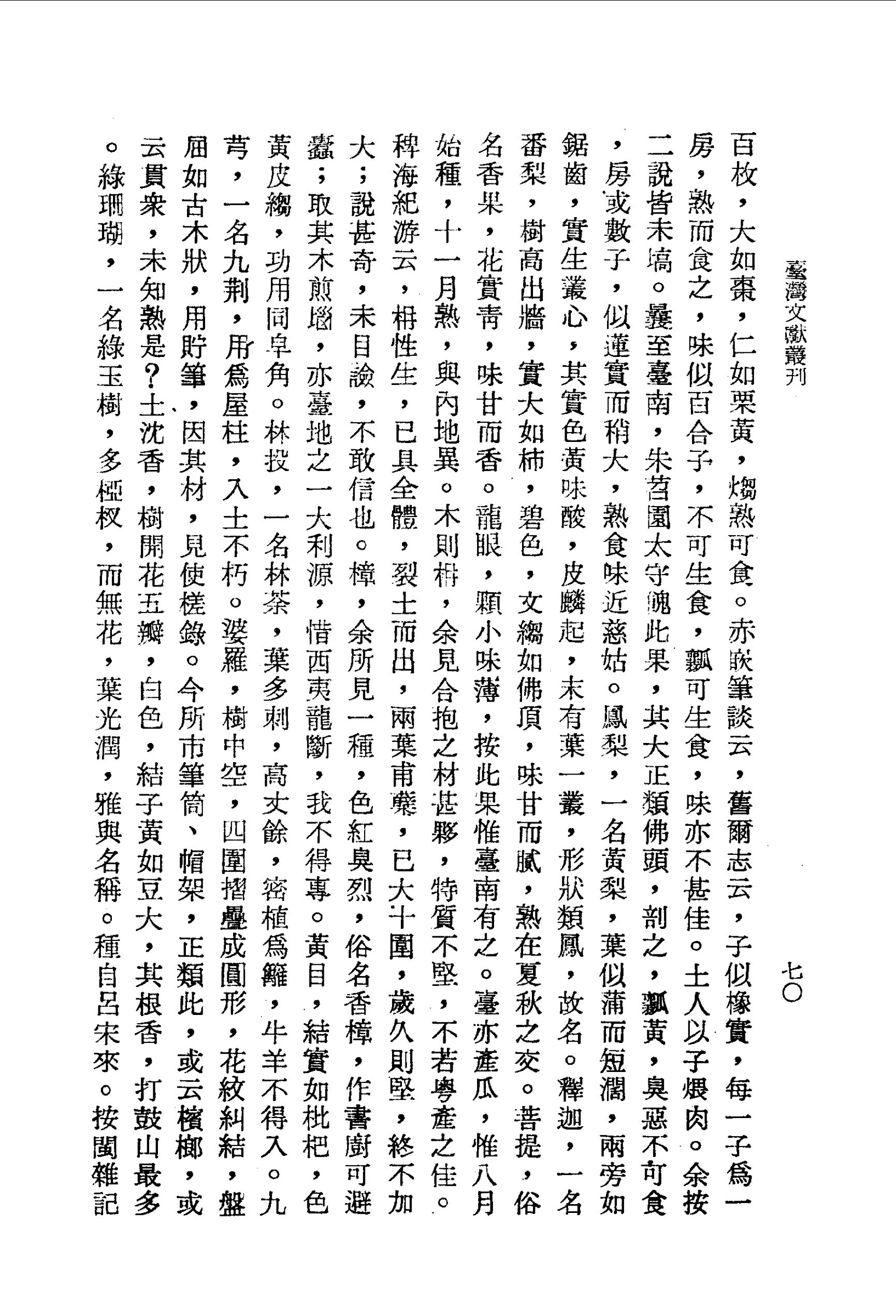 樟,余所見一種,色紅臭烈,俗名香樟,作書廚可避蠹;取其木煎堖,亦臺地之一大利源,惜西夷龍斷,我不得專。