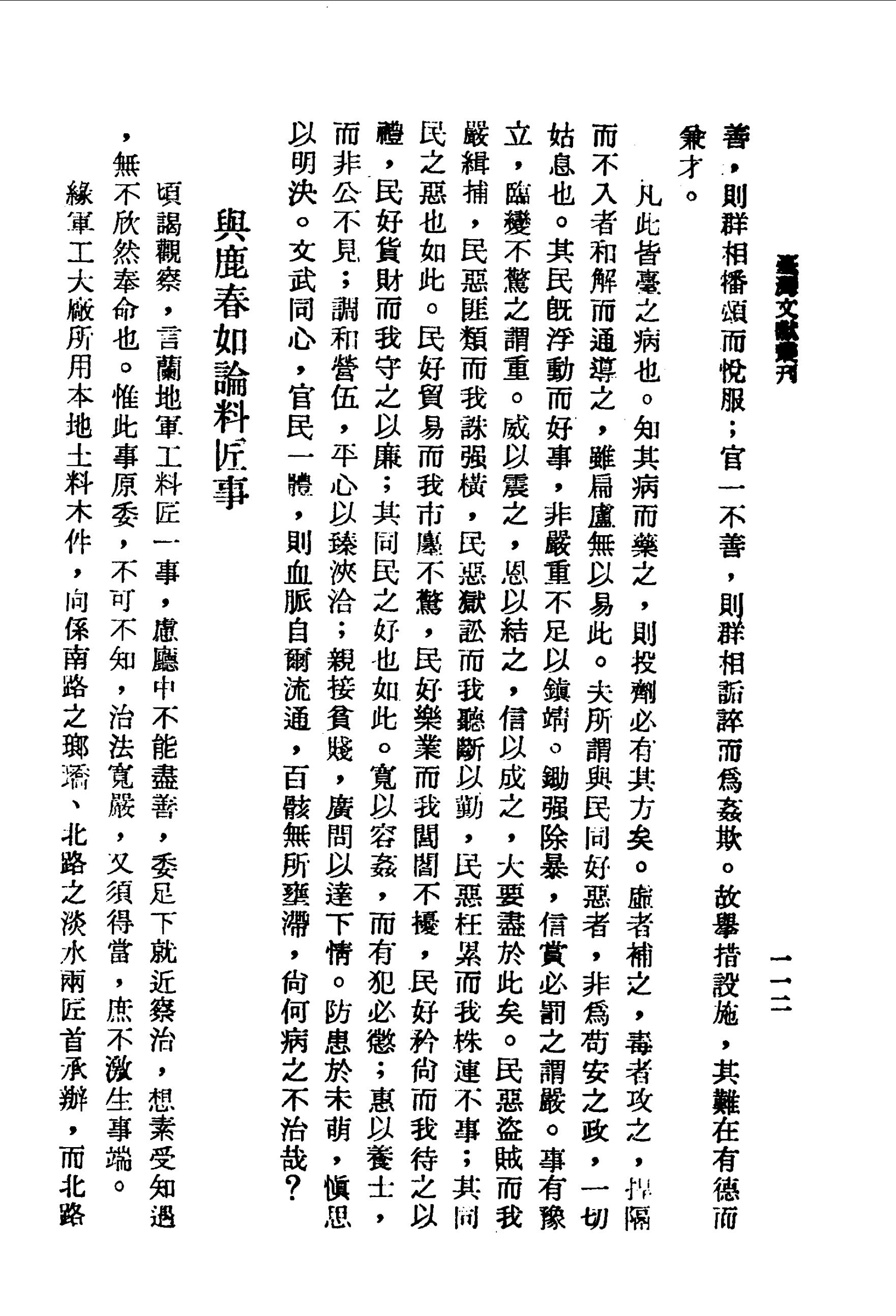 凡此皆臺之病也。知其病而藥之,則投劑必有其方矣。虛者補之,毒者攻之,捍格而不入者和解而通導之,雖扁盧無以易。此夫子所謂與民同好惡者,非為苟安之政、一切姑息也。其民既浮動而好事,非嚴重不足以鎮靖。鋤強除暴,信賞必罰之謂嚴。事有豫立,臨變不驚之謂重。威以震之,恩以結之,信以成之。大要盡於此矣。