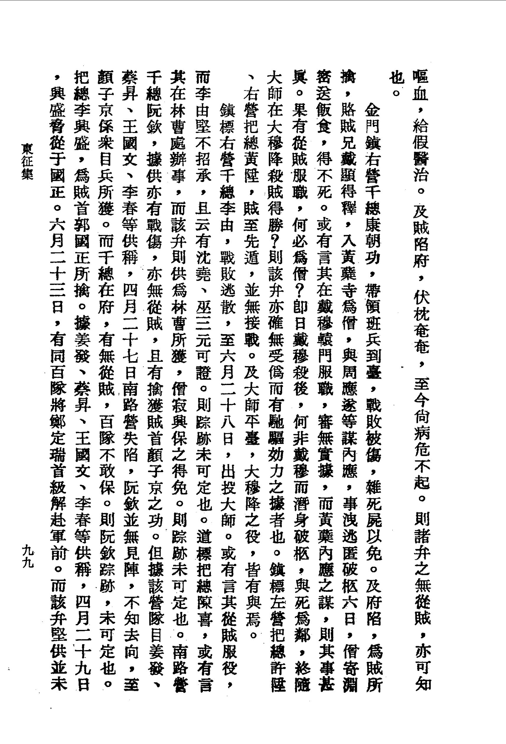 鎮標右營把總李貞,先于三月內嘔血,給假醫治。及賊陷府,伏枕奄奄,至今尚病危不起。則諸弁之無從賊,亦可知也。