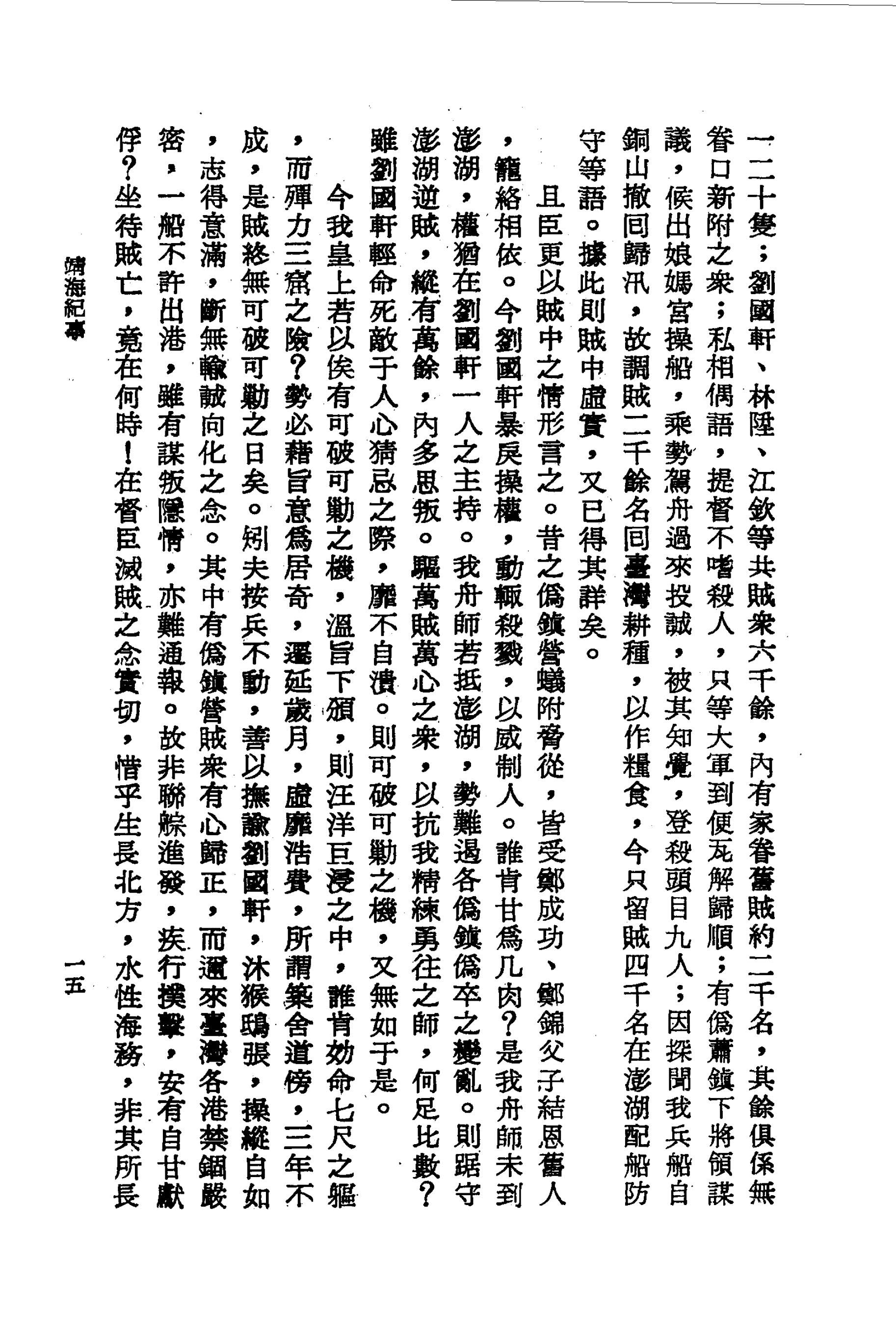 在督臣滅賊之念實切,惜乎生長北方,水性海務,非其所長,登舟之際,混心嘔吐,身體維艱;所以前疏懇留督臣居中調度,蓋為此也。
