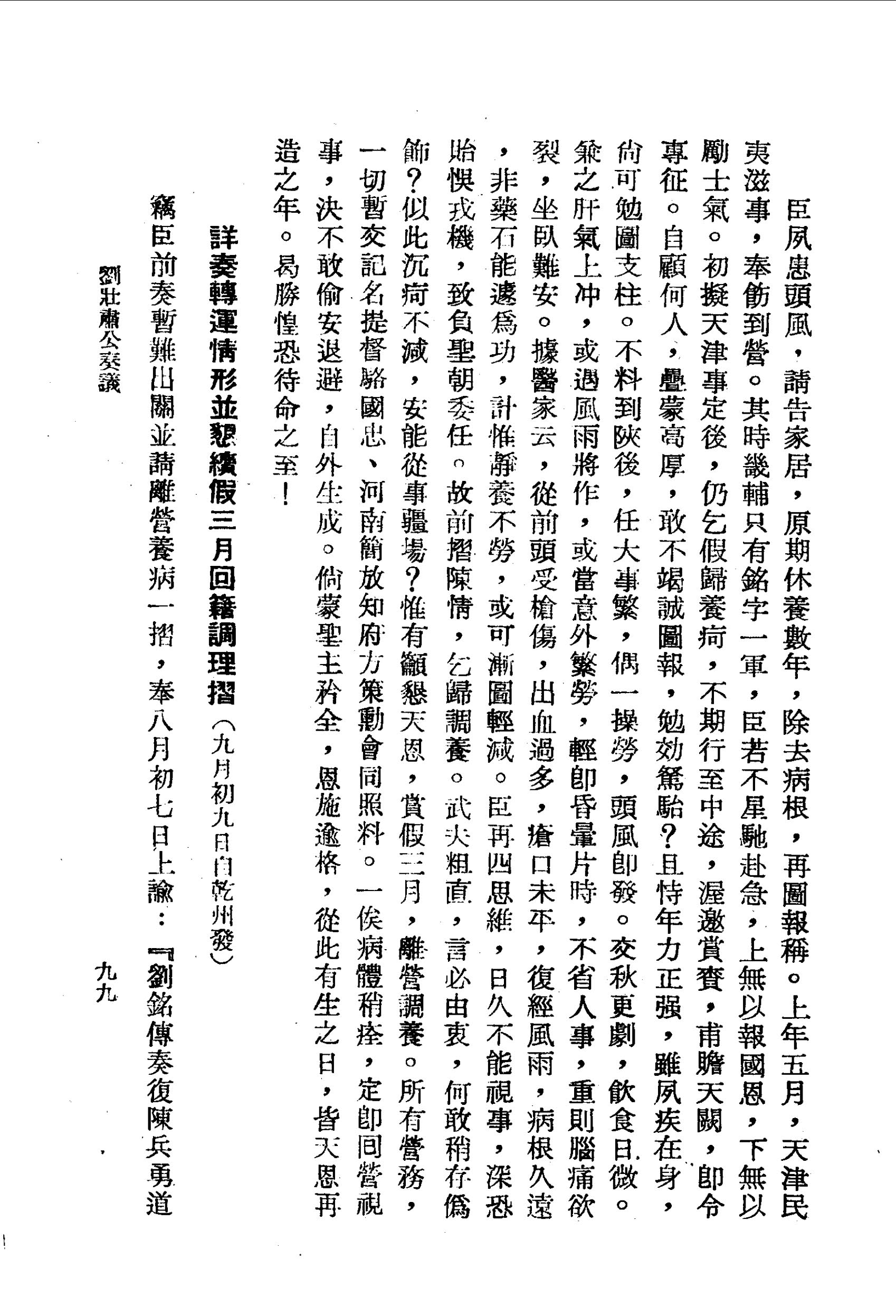 臣夙患頭風,請告家居,原期休養數年,除去病根,再圖報稱。