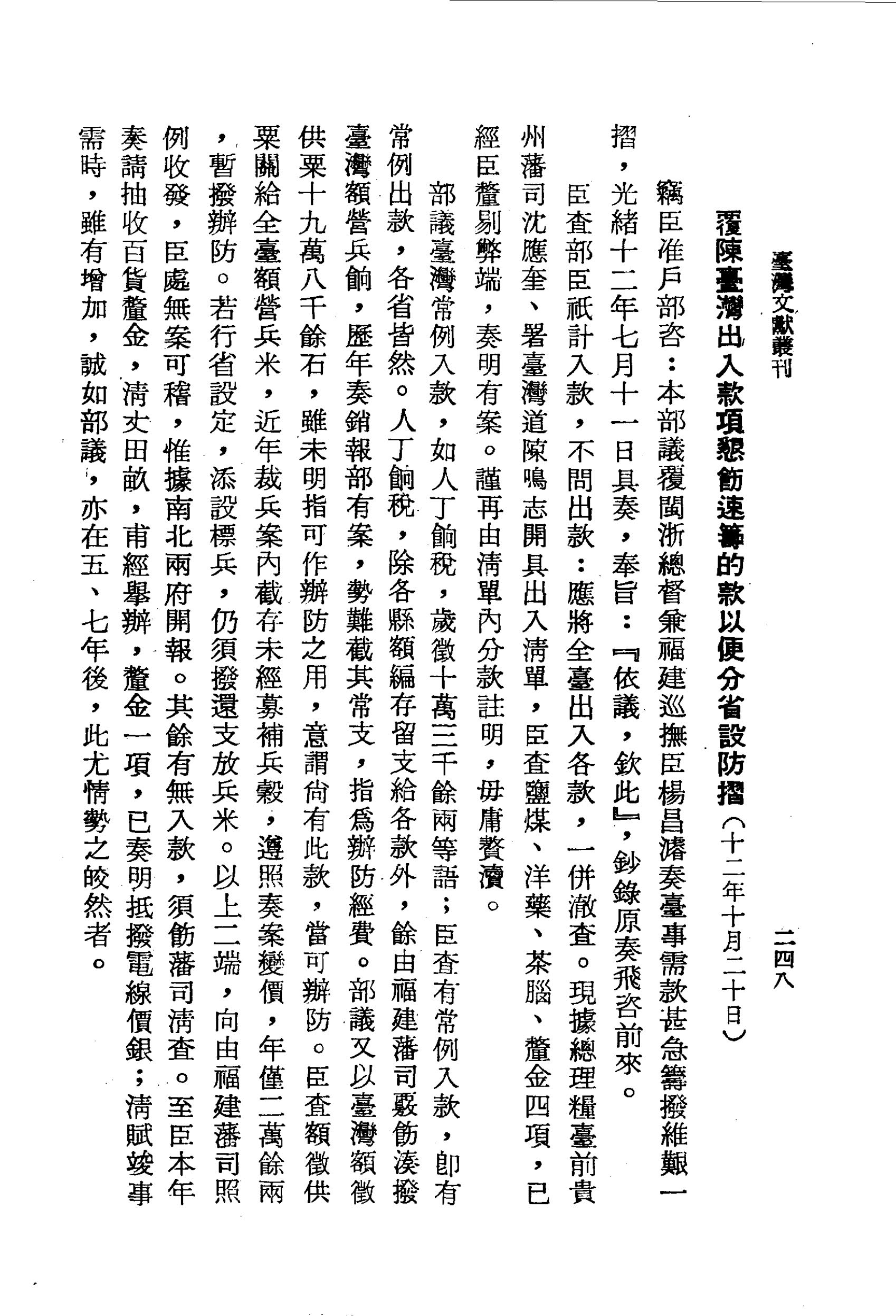 現據總理糧臺前貴州藩司沈應奎、署臺灣道陳鳴志開具出入清單,臣查鹽煤、洋藥、茶腦、釐金四項,已經臣釐剔弊端,奏明有案。