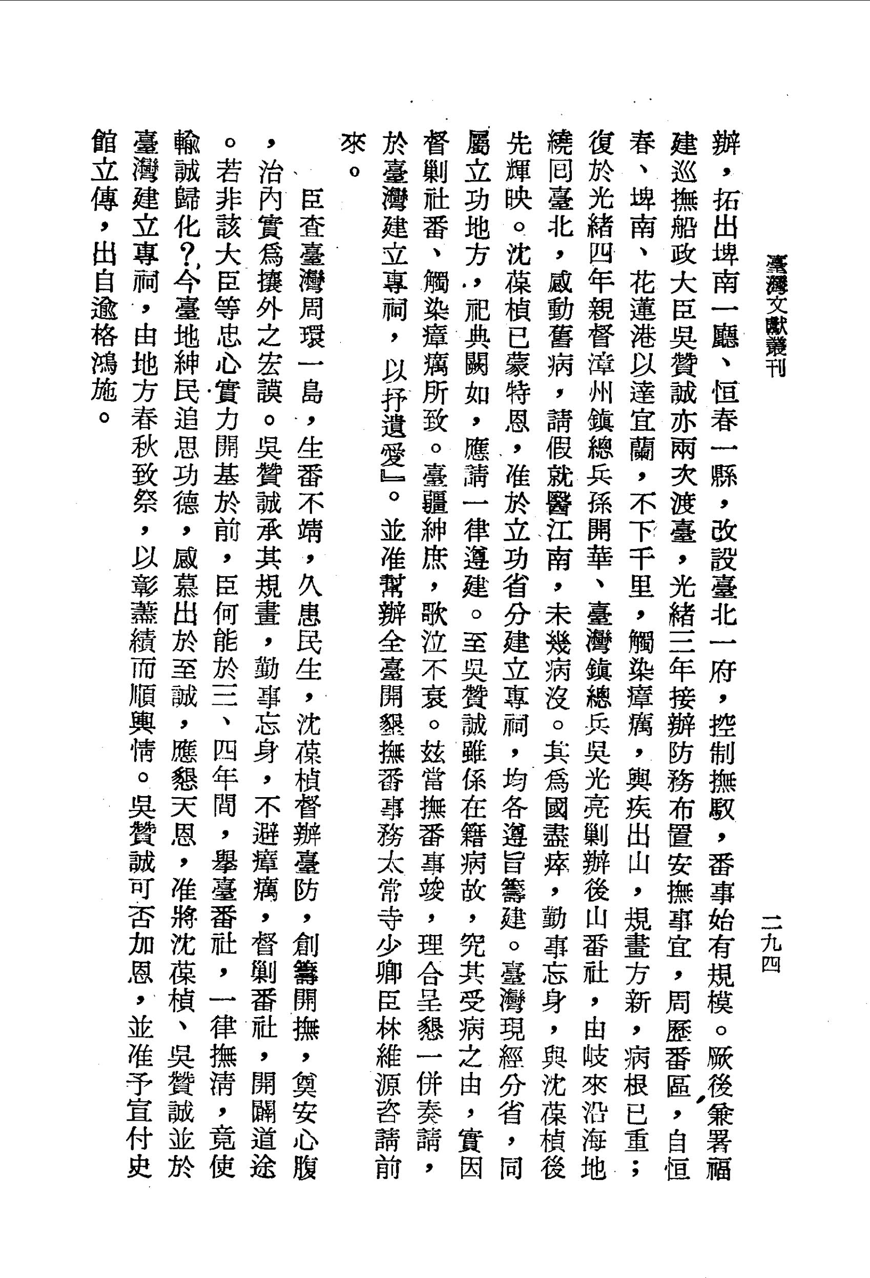 至吳贊誠雖係在籍病故,究其受病之由,實因督勦社番、觸染瘴癘所致。臺疆紳庶,歌泣不衰。茲當撫番事竣,理合呈懇一併奏請,於臺灣建立專祠,以抒遺愛。