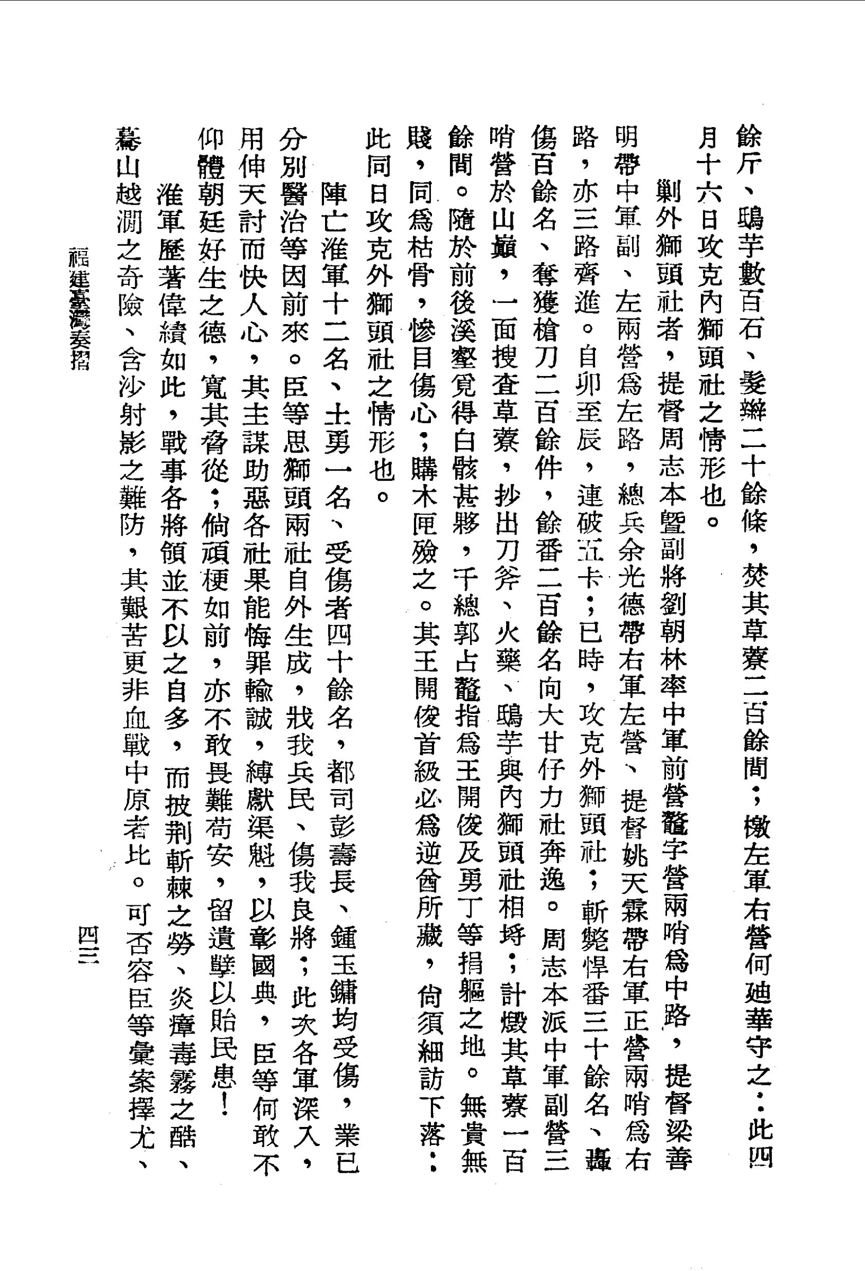 淮軍歷著偉績如此,戰事各將領並不以之自多,而披荊斬棘之勞、炎瘴毒霧之酷、驀山越澗之奇險、含沙射影之難防,其艱苦更非血戰中原者比。