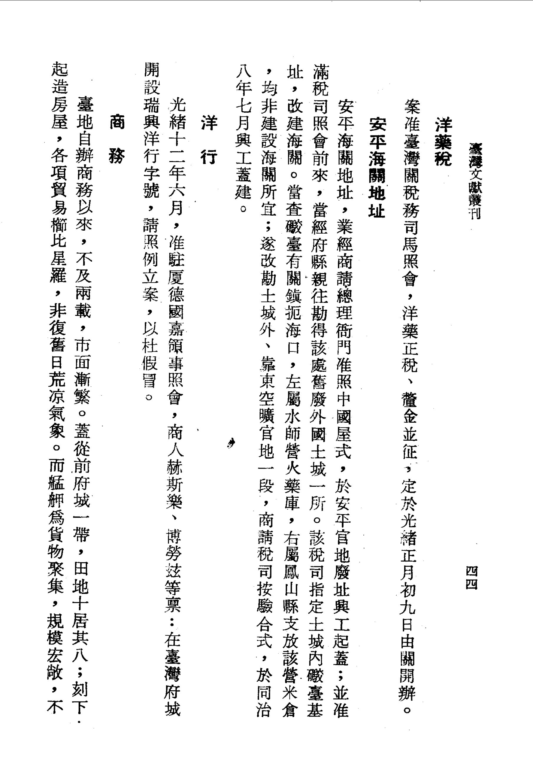 案准臺灣關稅務司馬照會,洋藥正稅、釐金並征,定於光緒正月初九日由關開辦。