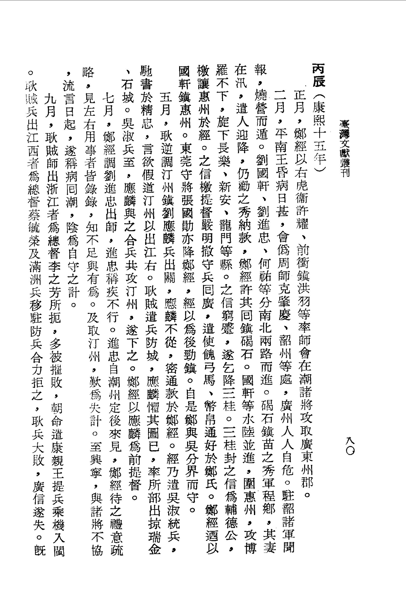 二月,平南王昏病日甚,會偽周師克肇慶、韶州等處,廣州人人自危。駐韶諸軍聞報,燒營而遁。劉國軒、劉進忠、何祐等分南北兩路而進。