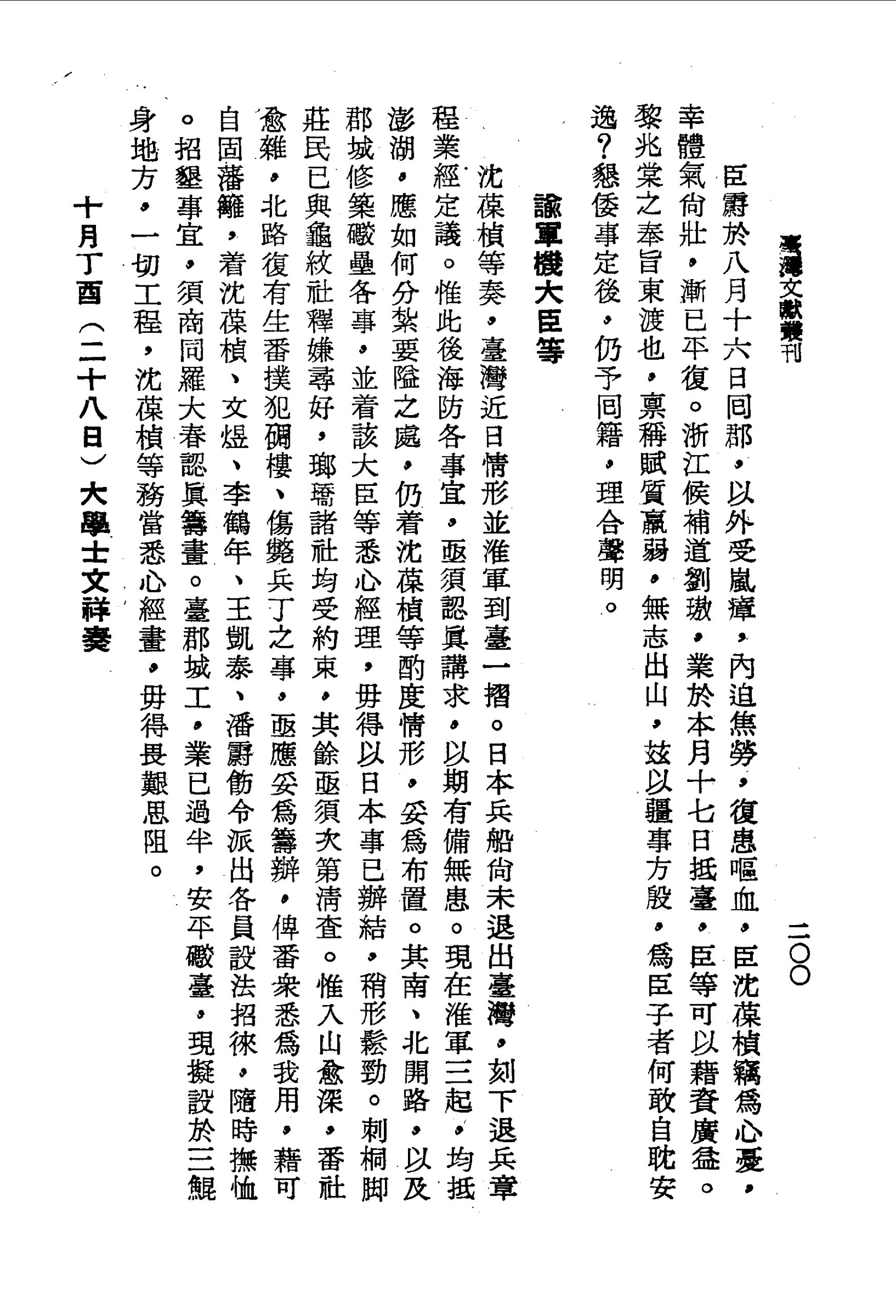 臣霨於八月十六日回郡,以外受嵐瘴,內迫焦勞,復患嘔血,臣沈葆楨竊為心憂,幸體氣尚壯,漸已平復。