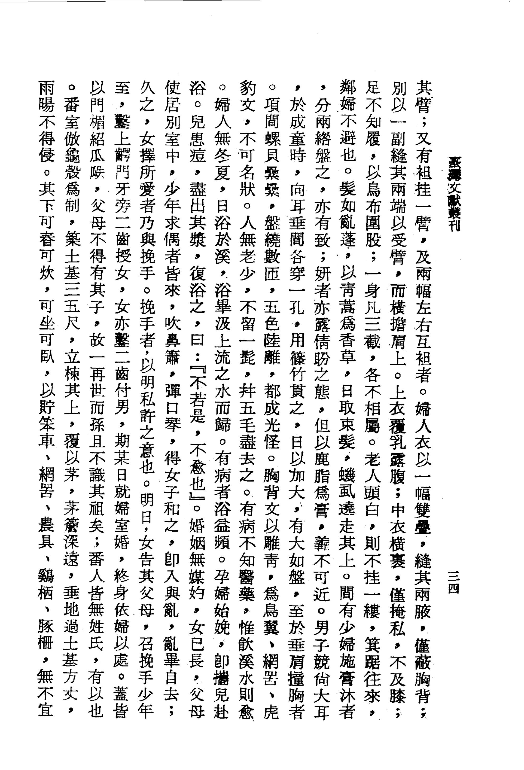 有病不知醫藥,惟飲溪水則愈。婦人無冬夏,日浴於溪,浴畢汲上流之水而歸。有病者浴益頻。孕婦始娩,即攜兒赴浴。兒患痘,盡出其漿,復浴之,曰:『不若是,不愈也』。
