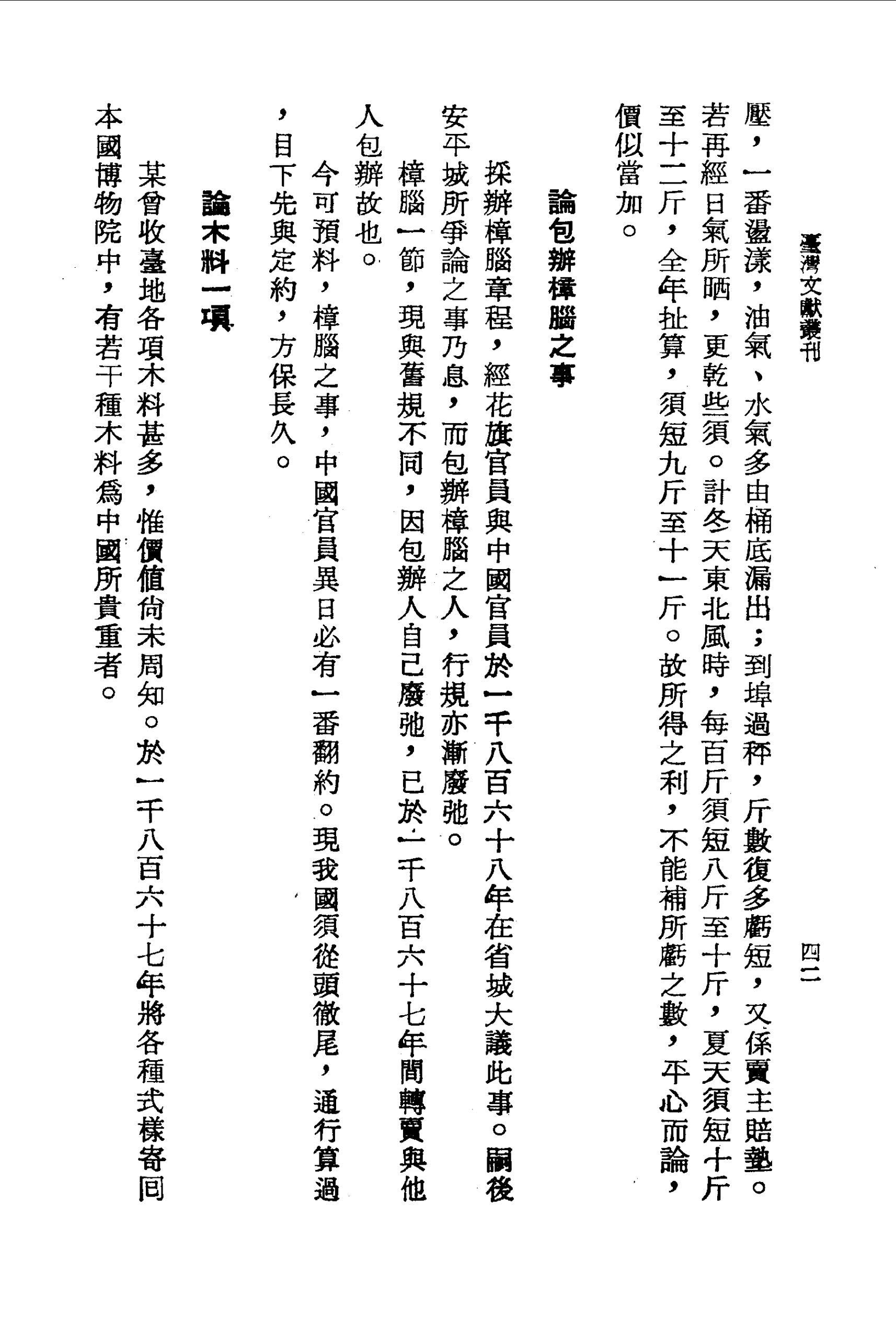 稅既重而漏者多,雖西人在中國海關者亦極思出力整頓,憑公辦理,以期永守和約,然仍不能於此一礮地地方(一礮地,謂礮力所及地方)遏絕漏稅,以保護守分商家。在汕頭所有入口釐金現額,亦與從前無異,約得廈門四十分之一。大約入口各貨,自汕頭至廈門,皆與前額相符。廣東石龍地方,並漳州內地,禁遏漏稅之法最好。舊年廣東洋藥一項,凡由洋船裝運者,皆已勒令加稅。惟所有中國商家雜貨,准於外國通商地方起運上岸,尚不中用,因出口、入口之正稅釐金,准於和約內所儎碼頭並未儎碼頭皆可抽稅也。