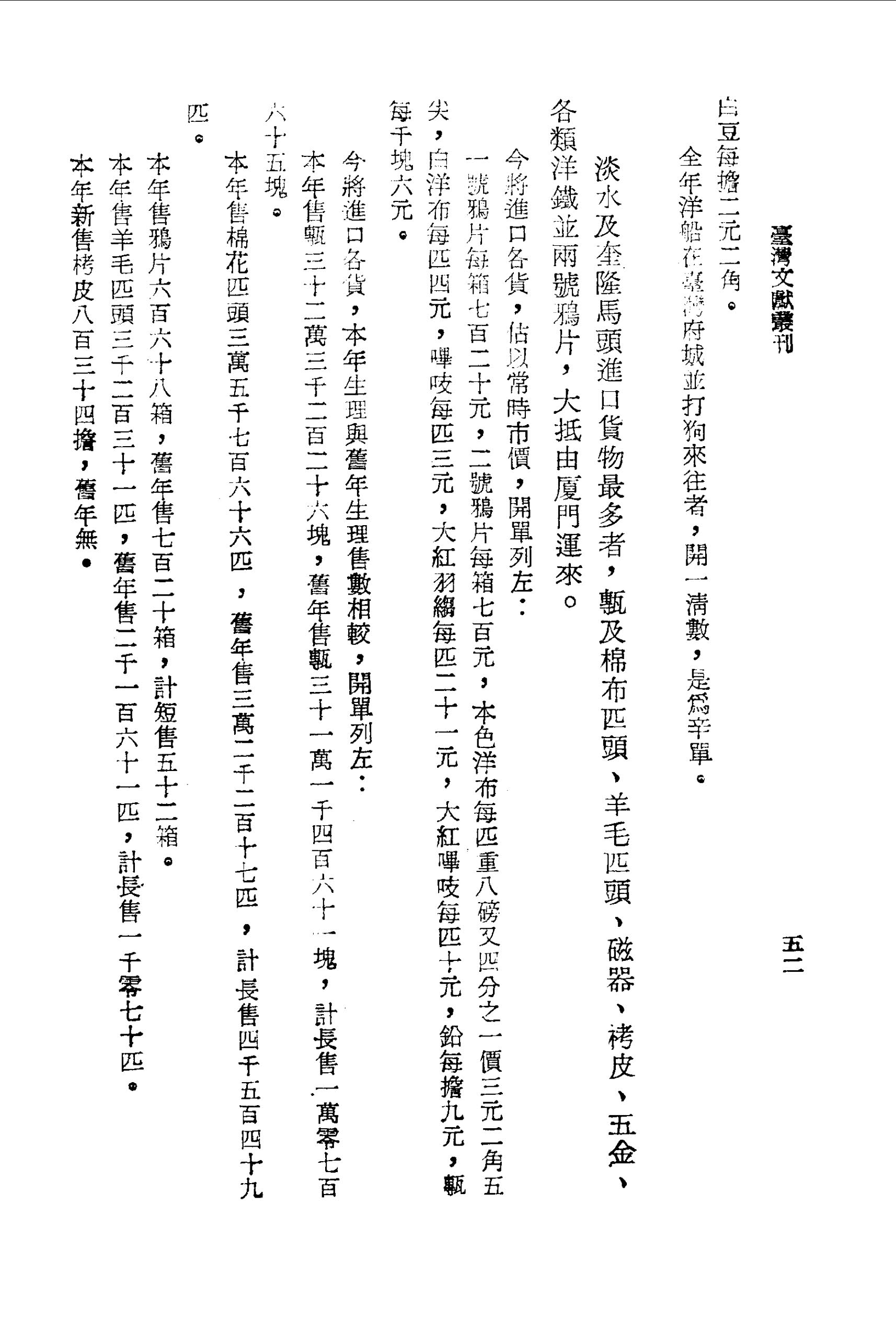 今將進口各貨,本年生理與舊年生理售數相較,開單列左:
