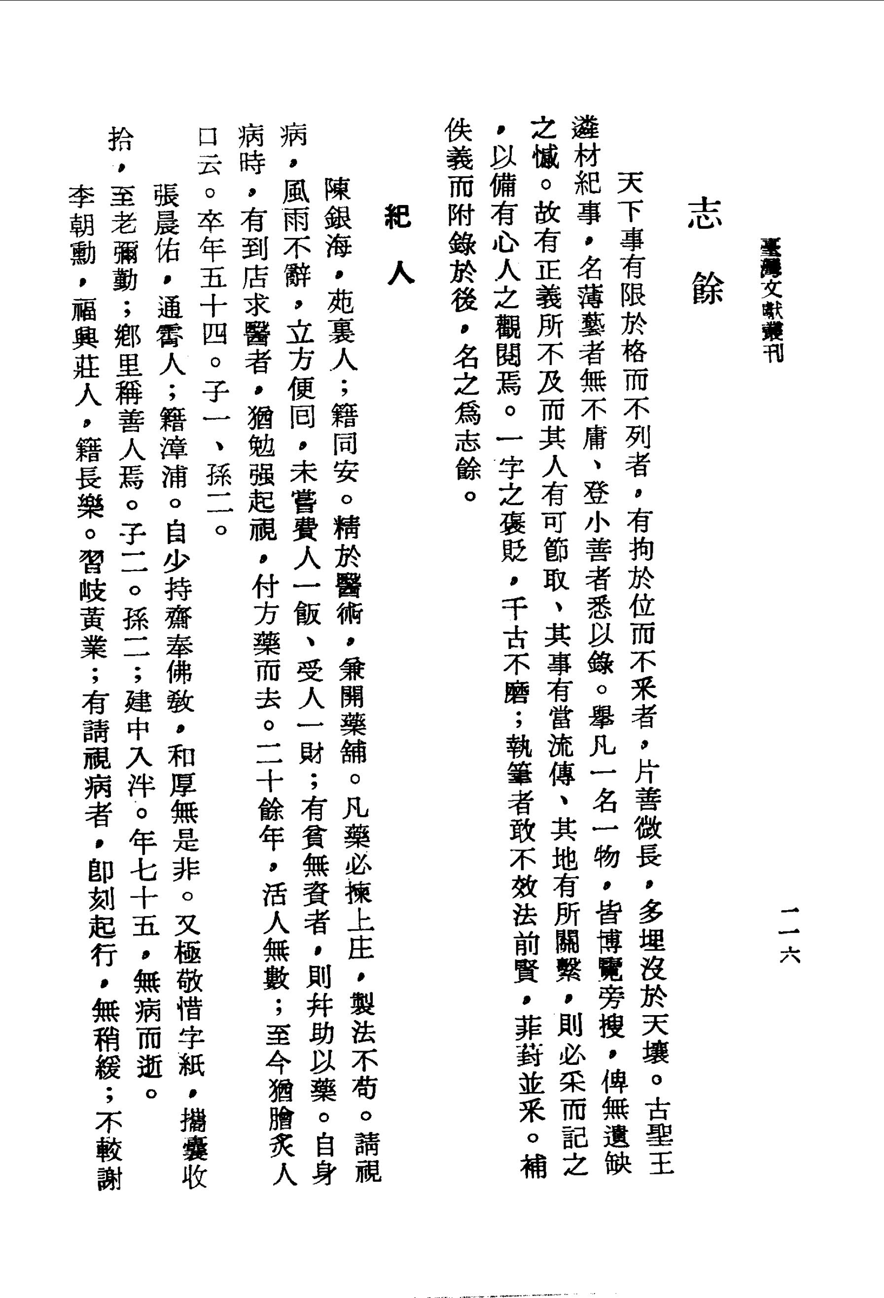 李朝勳,褔興莊人,籍長樂.習岐黃業;有請視病者,即刻起行,無稍緩;不較謝金,貧人多嘉賴焉。耕讀傳家,馭下有法。親見五代同堂,男女七十餘人。孫鍾萼,入泮。年八十七而終。