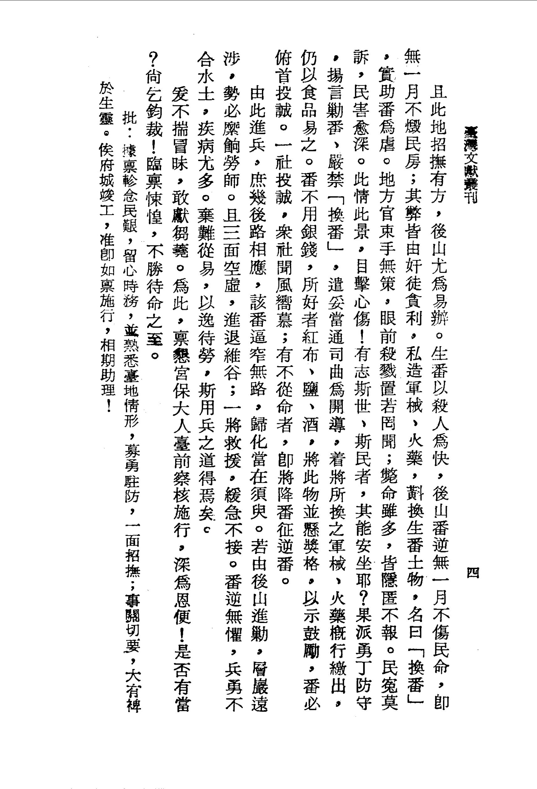 由此進兵,庶幾後路相應,該番逼窄無路,歸化當在須臾。若由後山進勦,層巖遠涉,勢必縻餉勞師。且三面空虛,進退維谷;一將救援,緩急不接。番逆無懼,兵勇不合水土,疾病尤多。棄難從易,以逸待勞,斯用兵之道得焉矣。