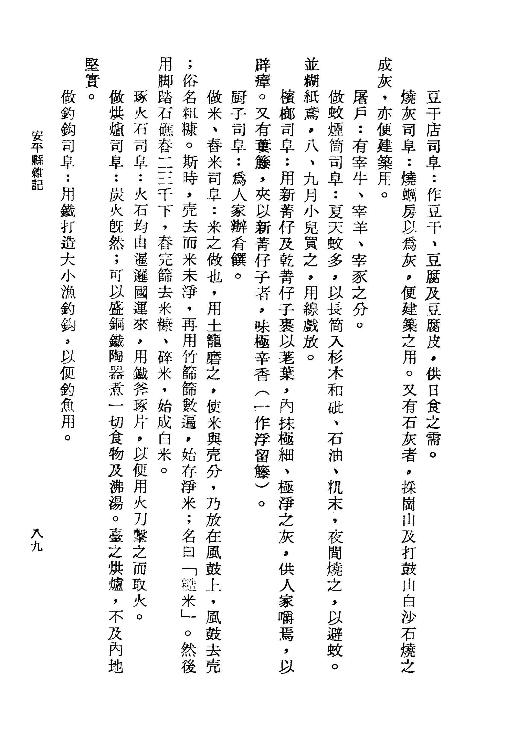 檳榔司阜:用新菁仔及乾菁仔子裹以荖葉,內抹極細、極淨之灰,供人家嚼焉,以辟瘴。又有蔞籐,夾以新菁仔子者,味極辛香(一作浮留籐)。