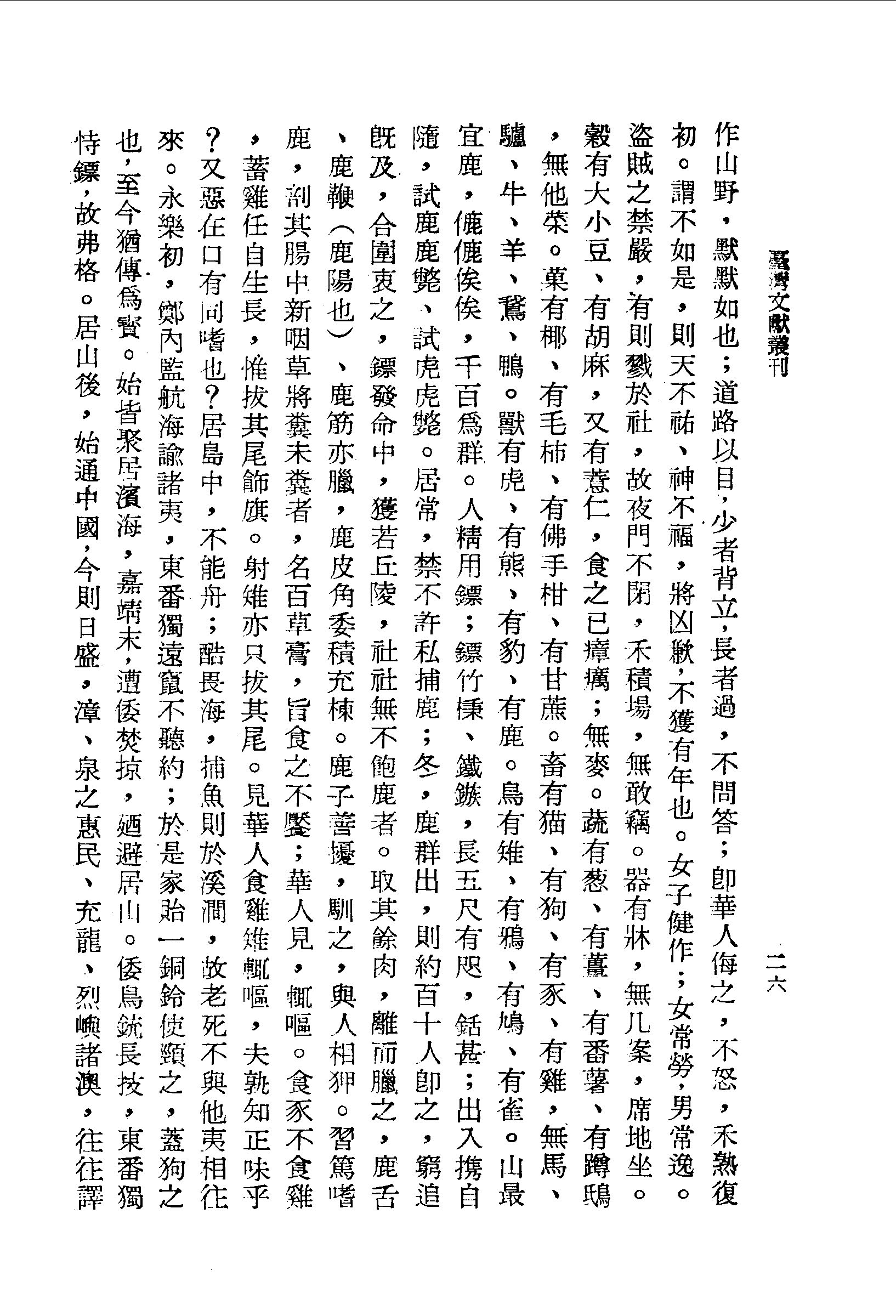 穀有大小豆、有胡麻,又有薏仁,食之已瘴癘;無麥。蔬有蔥、有薑、有番薯、有蹲鴟,無他菜。果有椰、有毛柿、有佛手柑、有甘蔗。