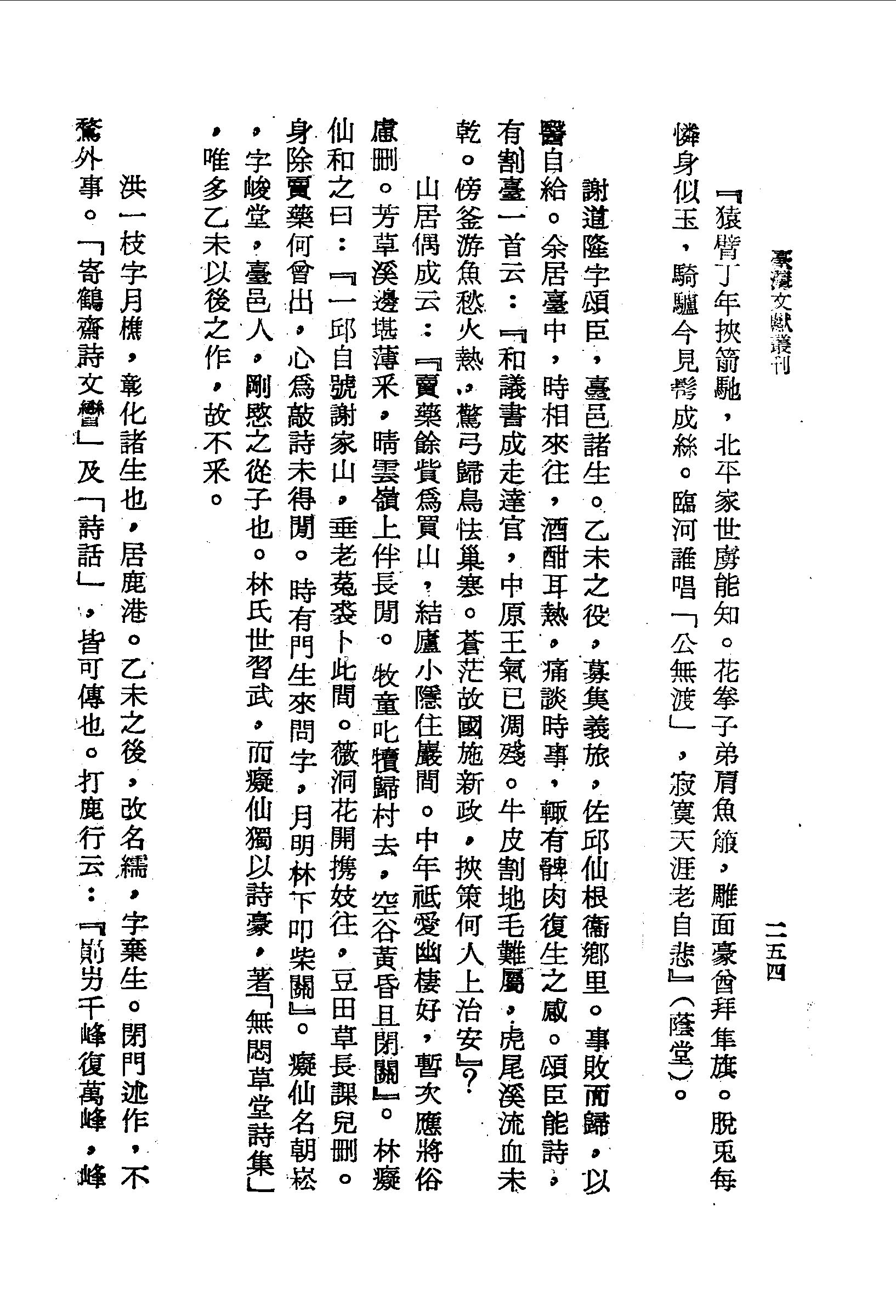 謝道隆字頌臣,臺邑諸生。乙未之役,募集義旅,佐邱仙根衛鄉里。事敗而歸,以醫自給。余居臺中,時相來往,酒酣耳熱,痛談時事,輒有髀肉復生之感。