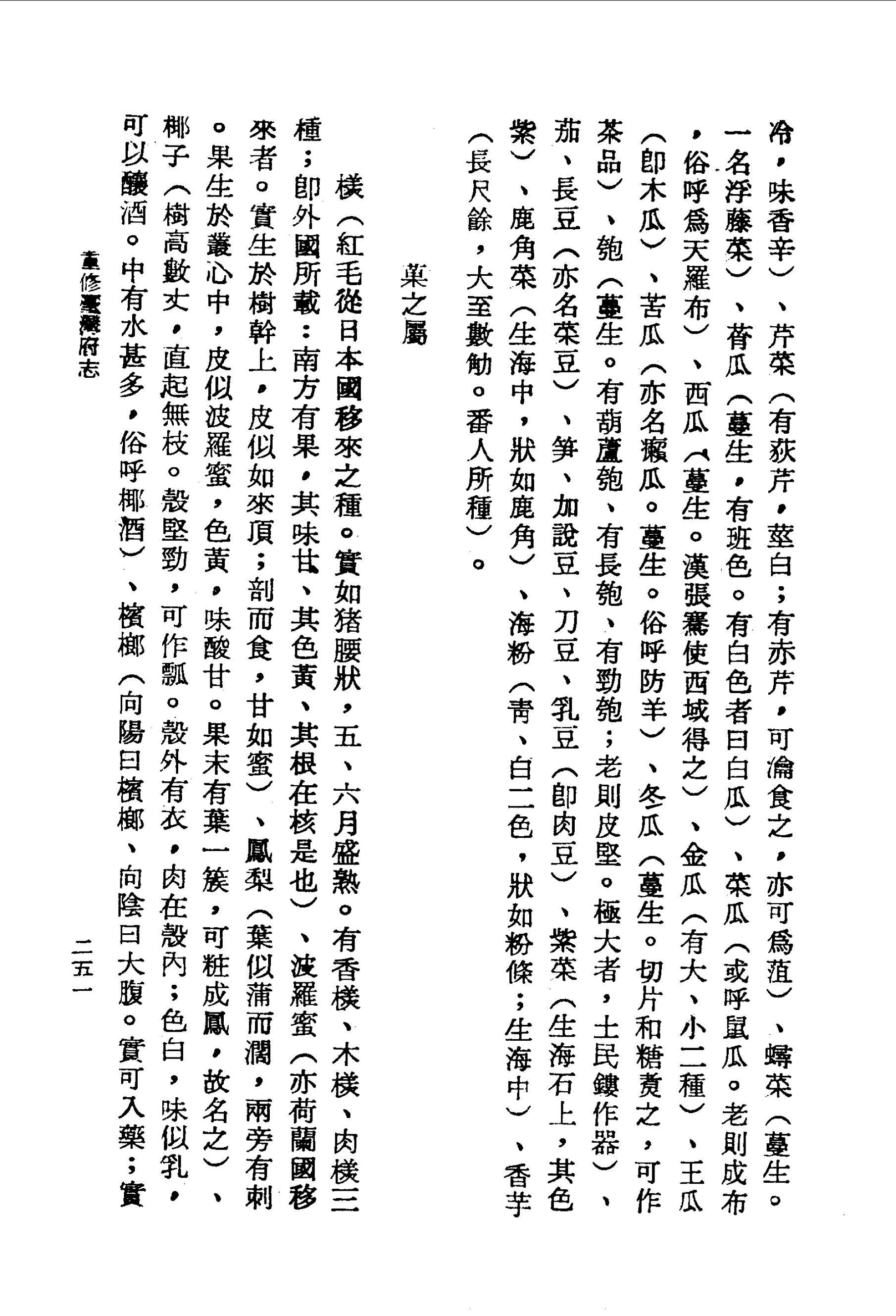 檳榔(向陽曰檳榔、向陰曰大腹.實可入藥;實如雞心,和荖藤食之,能醉人,可以袪瘴。人有故,則奉以為禮) 。