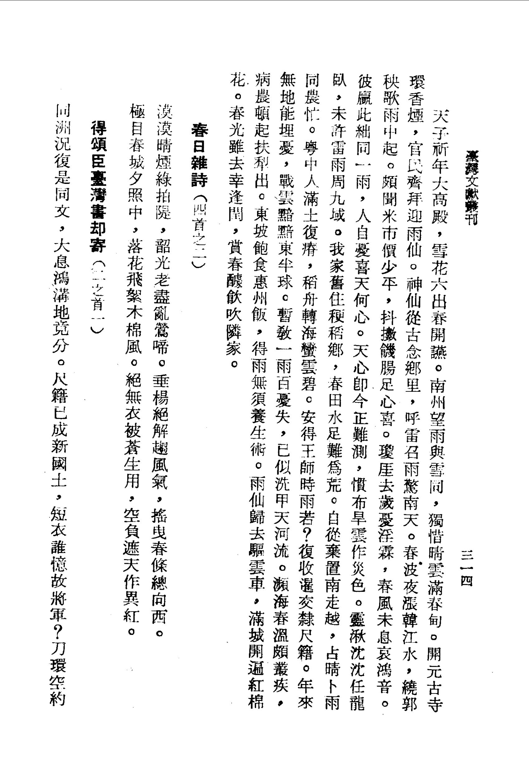 我家舊住稉稻鄉,春田水足難為荒。自從棄置南走越,占晴卜雨同農忙。粵中人滿土復瘠,稻舟轉海蠻雲碧。安得王師時雨若?復收暹交隸尺籍。年來無地能埋憂,戰雲黯黯東半球。暫教一雨百憂失,已似洗甲天河流。瀕海春溫頗叢疾,病農頓起扶犁出。東坡飽食惠州飯,得雨無須養生術。雨仙歸去驅雲車,滿城開遍紅棉花。春光雖去幸逢閏,賞春醵飲吹鄰家。