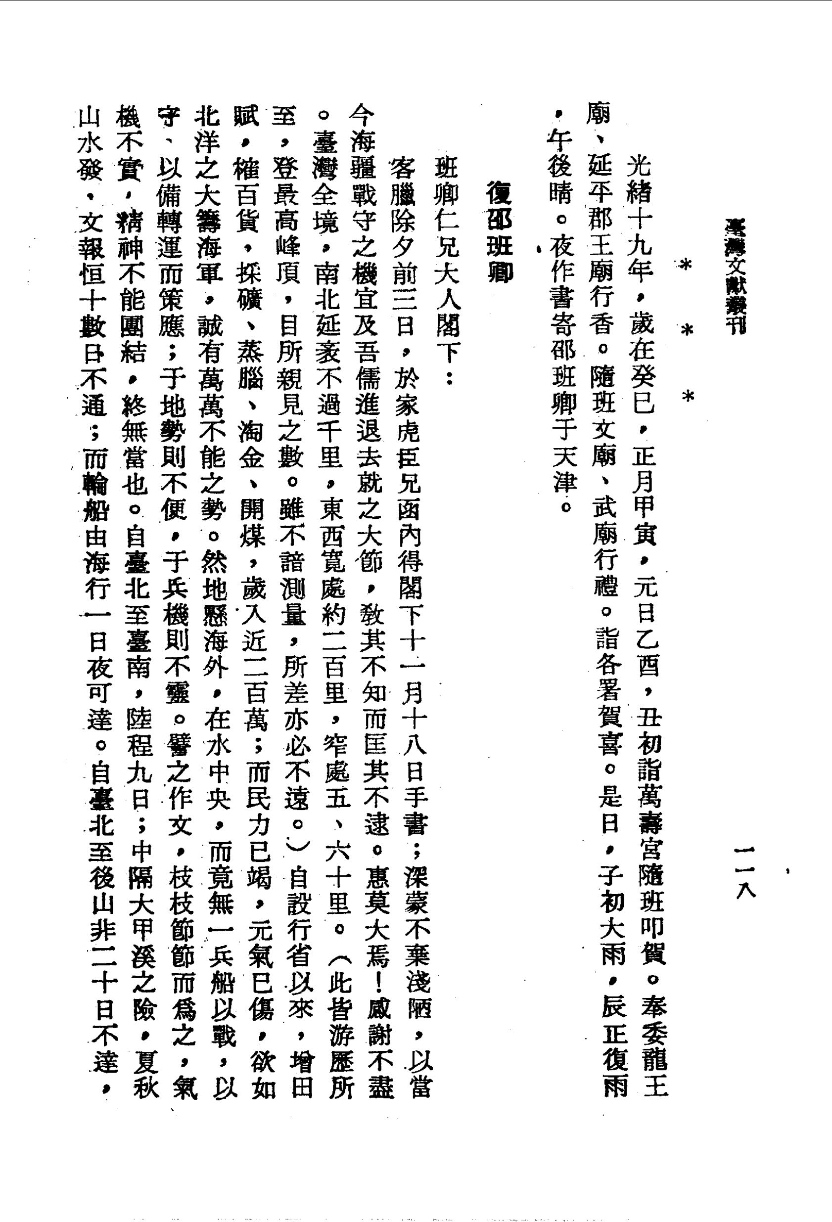 自設行省以來,增田賦,榷百貨,採礦、蒸腦、淘金、開煤,歲入近二百萬;而民力已竭,元氣已傷,欲如北洋之大籌海軍,誠有萬萬不能之勢。然地懸海外,在水中央,而竟無一兵船以戰,以守,以備轉運而策應;于地勢則不便,于兵機則不靈。譬之作文,枝枝節節而為之,氣機不實,精神不能團結,終無當也。
