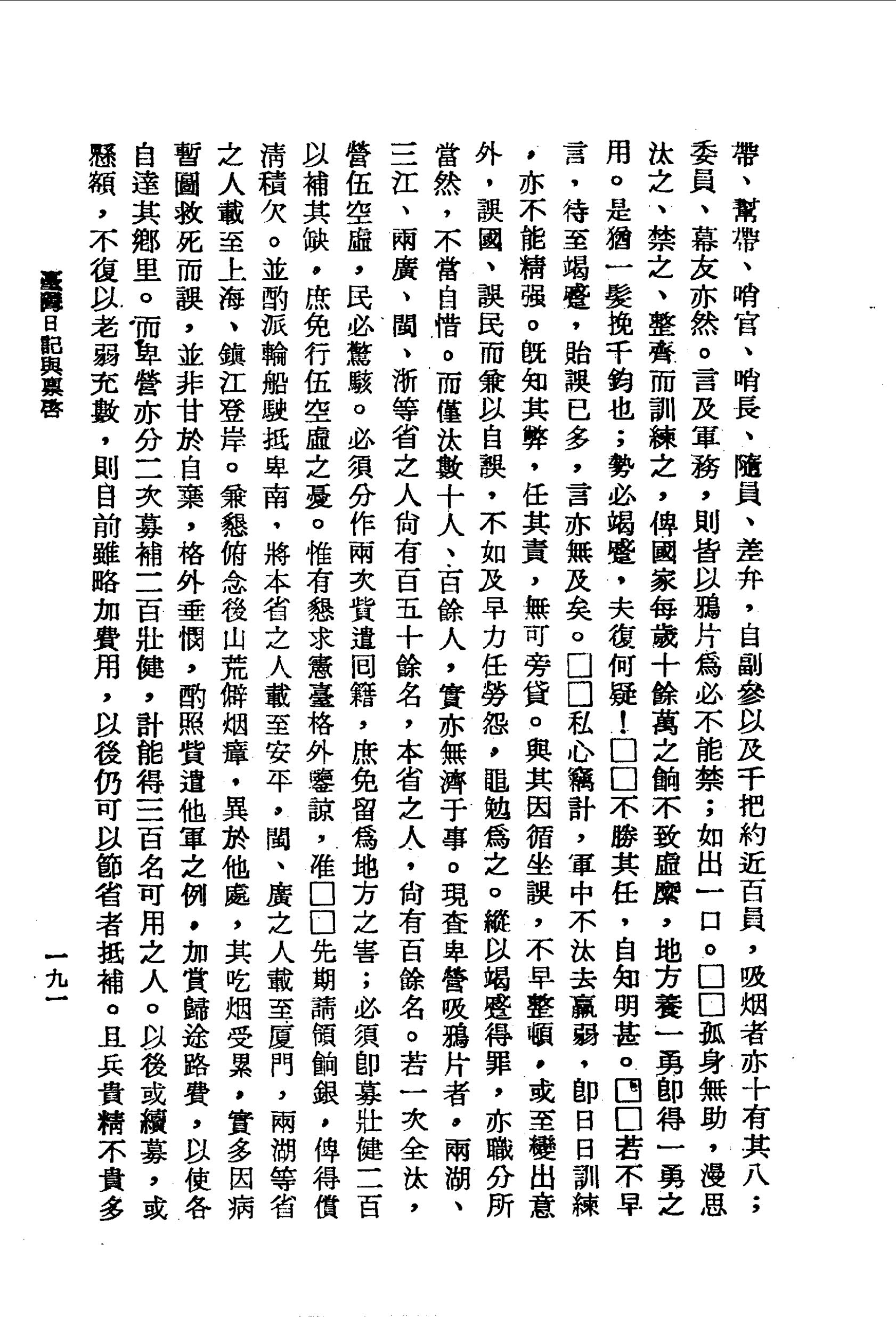 兼懇俯念後山荒僻烟瘴,異於他處,其吃烟受累,實多因病暫圖救死而誤,並非甘於自棄,格外垂憫,酌照貲遣他軍之例,加賞歸途路費,以使各自達其鄉里。而卑營亦分二次募補二百壯健,計能得三百名可用之人。以後或續募,或懸額,不復以老弱充數,則目前雖略加費用,以後仍可以節省者抵補。