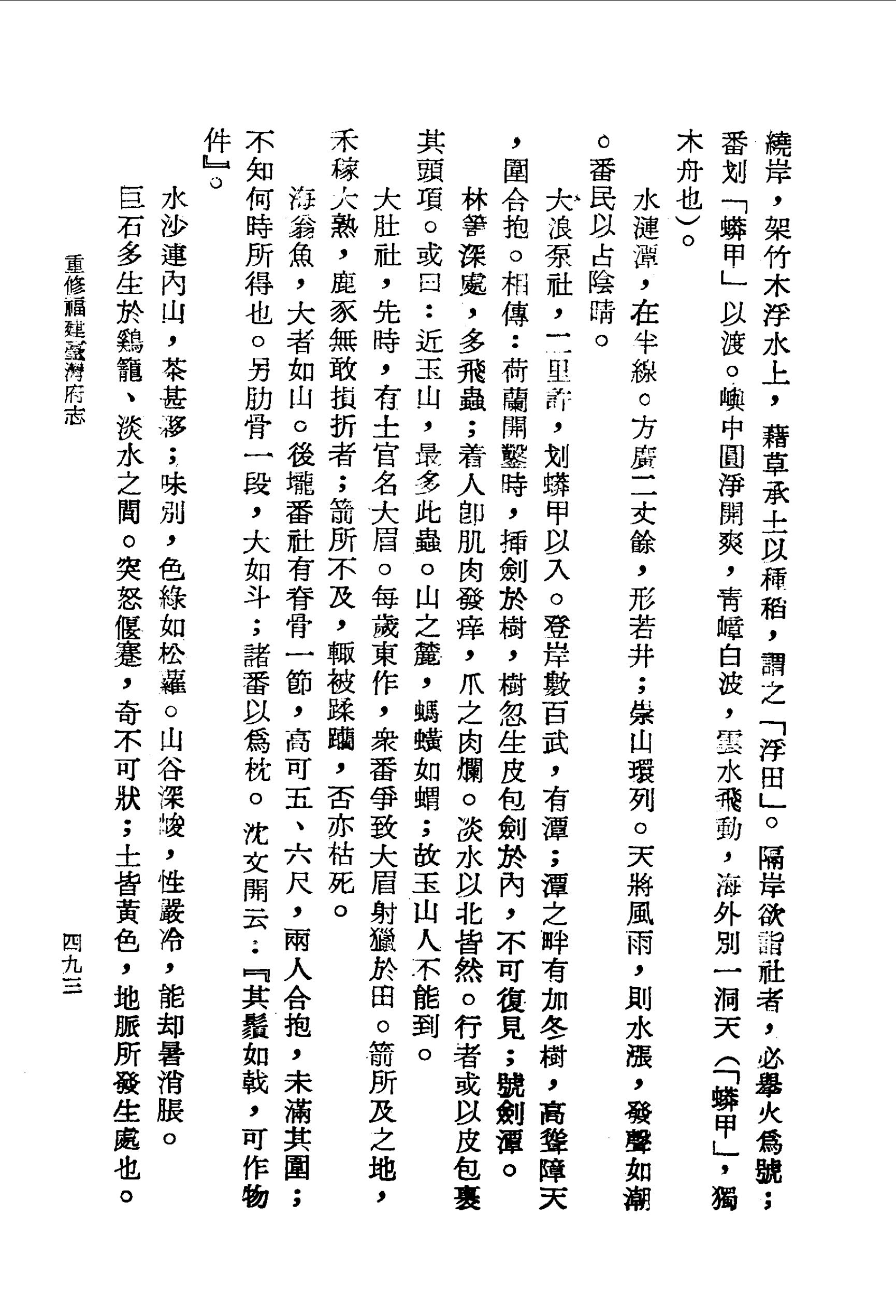 水沙連內山,茶甚夥;味別,色綠如松蘿.山谷深峻,性嚴冷,能卻暑消脹.