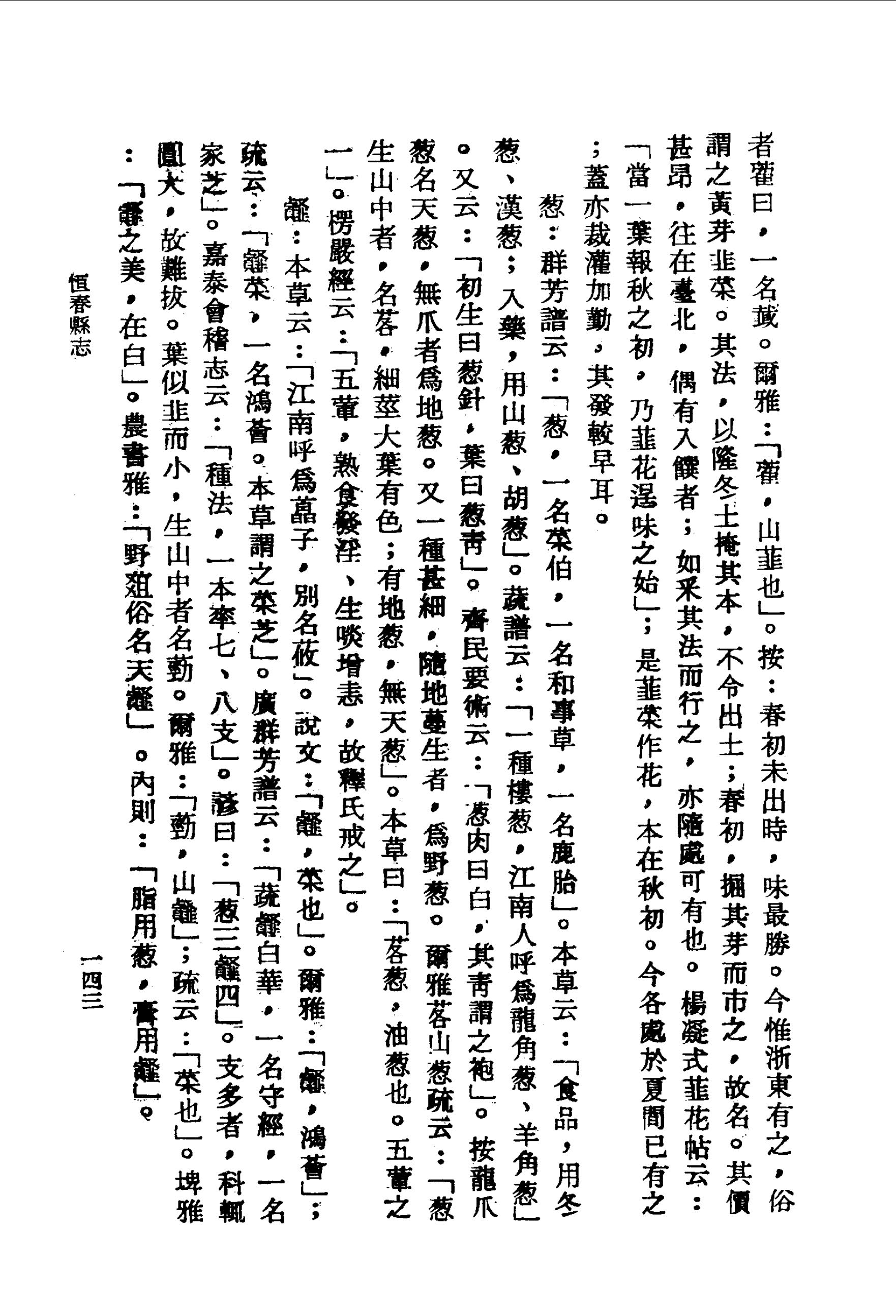 葱:群芳譜云:「葱,一名菜伯,一名和事草,一名鹿胎」.本草云:「食品,用冬葱、漢葱;入藥,用山葱、胡葱」.