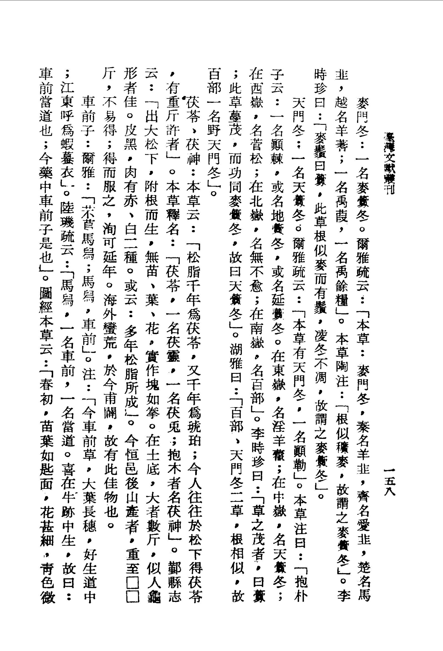 麥門冬:一名麥虋冬.爾雅疏云:「本草:麥門冬,秦名羊韭,齊名愛韭,楚名馬韭,越名羊蓍;一名禹葭,一名禹餘糧」.本草陶注:「根似穬麥,故謂之麥虋冬」.李時珍曰:「麥鬚曰虋,此草根似麥而有鬚,凌冬不凋,故謂之麥虋冬」。