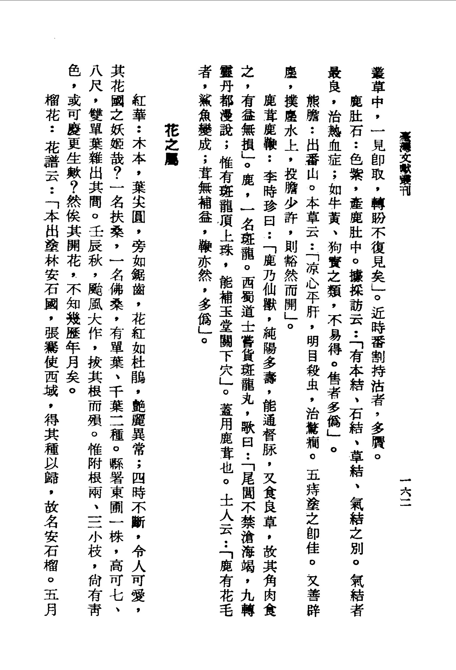 鹿茸鹿鞭:李時珍曰:「鹿乃仙獸,純陽多壽,能通督脉,又食良草,故其角肉食之,有益無損」.鹿,一名斑龍.西蜀道士嘗貨斑龍丸,歌曰:「尾閭不禁滄海竭,九轉靈丹都漫說;惟有斑龍頂上珠,能補玉堂關下穴」.蓋用鹿茸也.土人云:「鹿有花毛者,鯊魚變成;茸無補益,鞭亦然,多偽」。