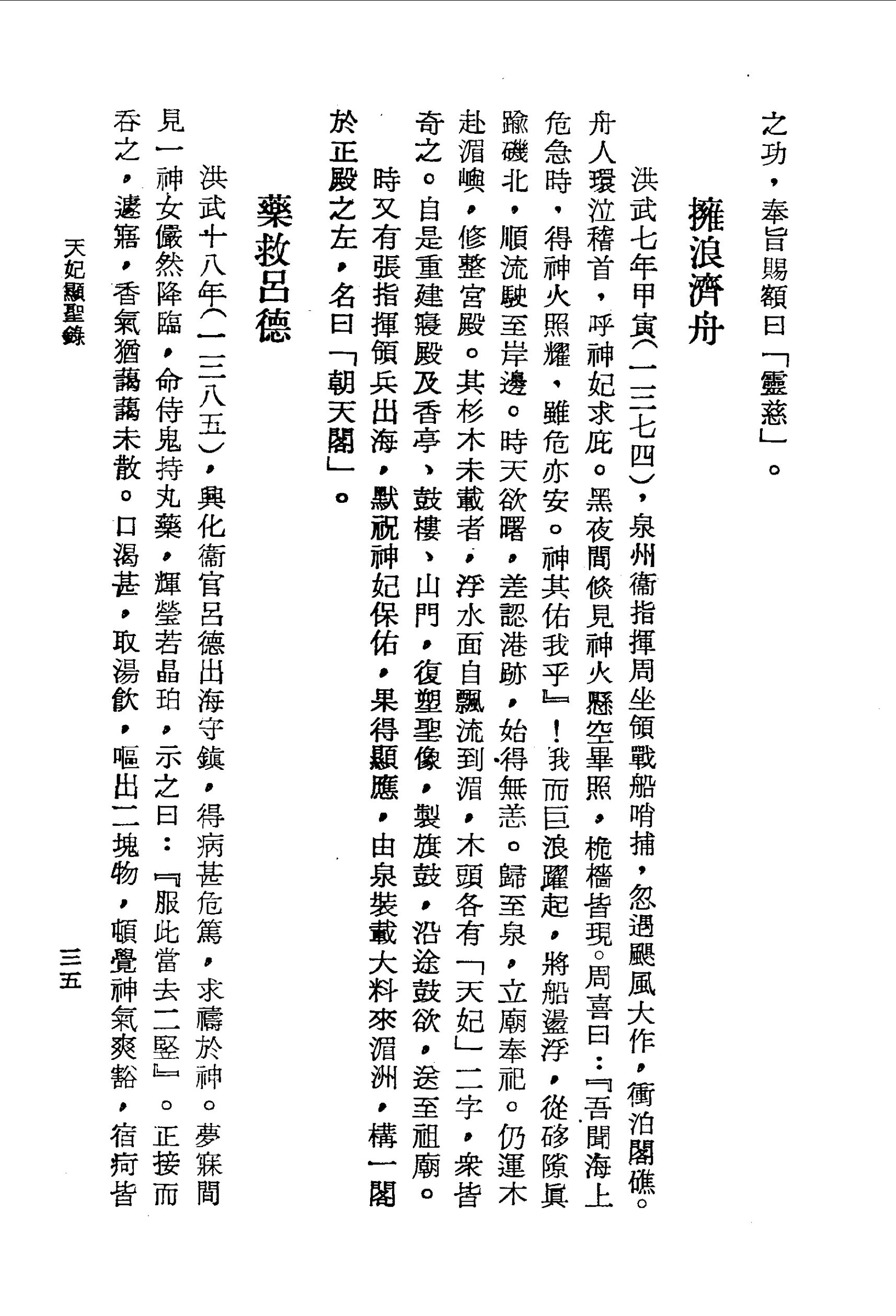 洪武十八年(一三八五),興化衛官呂德出海守鎮,得病甚危篤,求禱於神。夢寐間見一神女儼然降臨,命侍鬼持丸藥,輝瑩若晶珀,示之曰:『服此當去二豎』。正接而吞之,遽寤,香氣猶藹藹未散。口渴甚,取湯飲,嘔出二塊物,頓覺神氣爽豁,宿疴皆除,遂平復如除,遂平復如初。是夕夢神云:『疇昔之夜,持藥而救爾者,乃慈悲觀音菩薩示現也,當敬奉大士』。呂德感神靈赫奕,遂捐金創建觀音堂於湄嶼。。