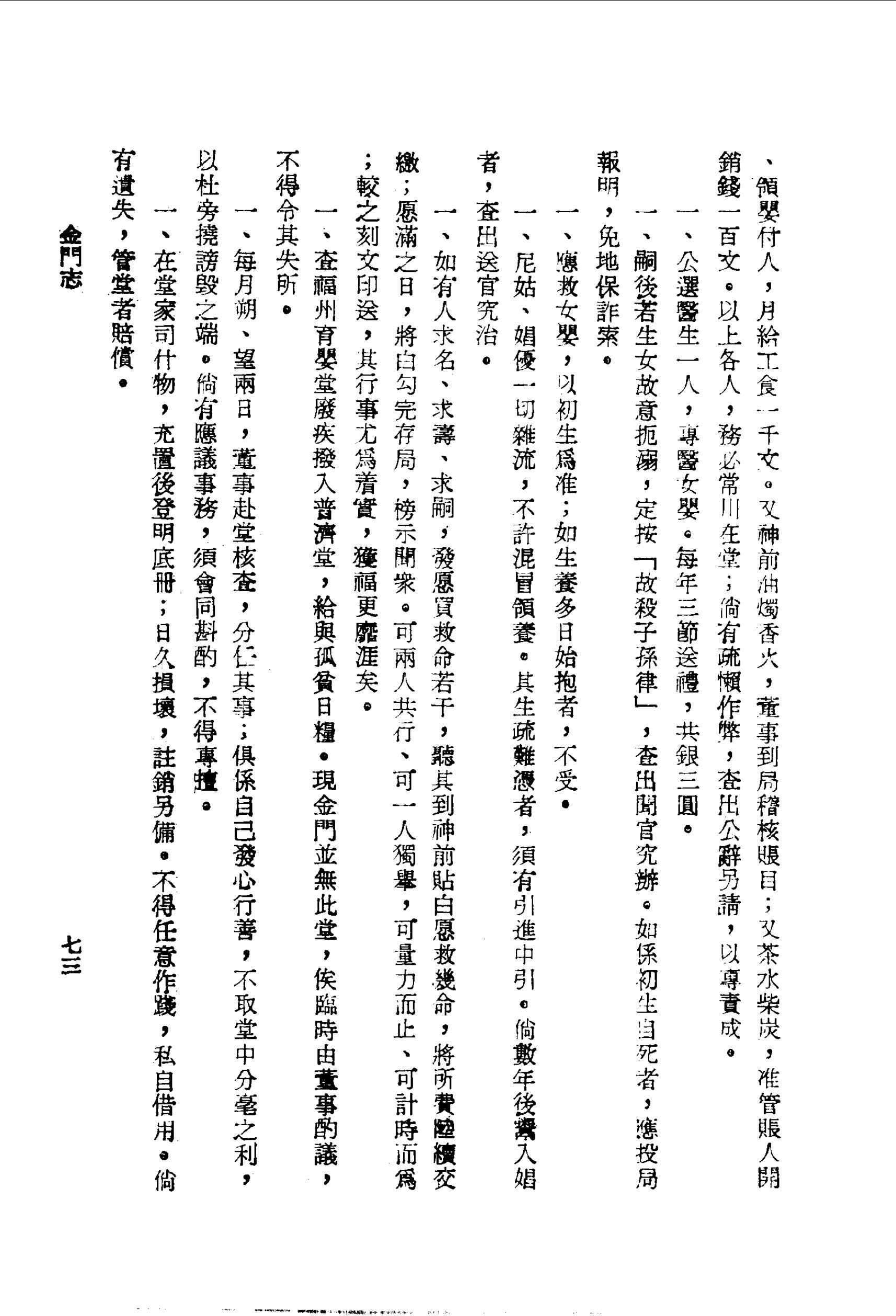 公選醫生一人,專醫女嬰.每年三節送禮,共銀三圓。