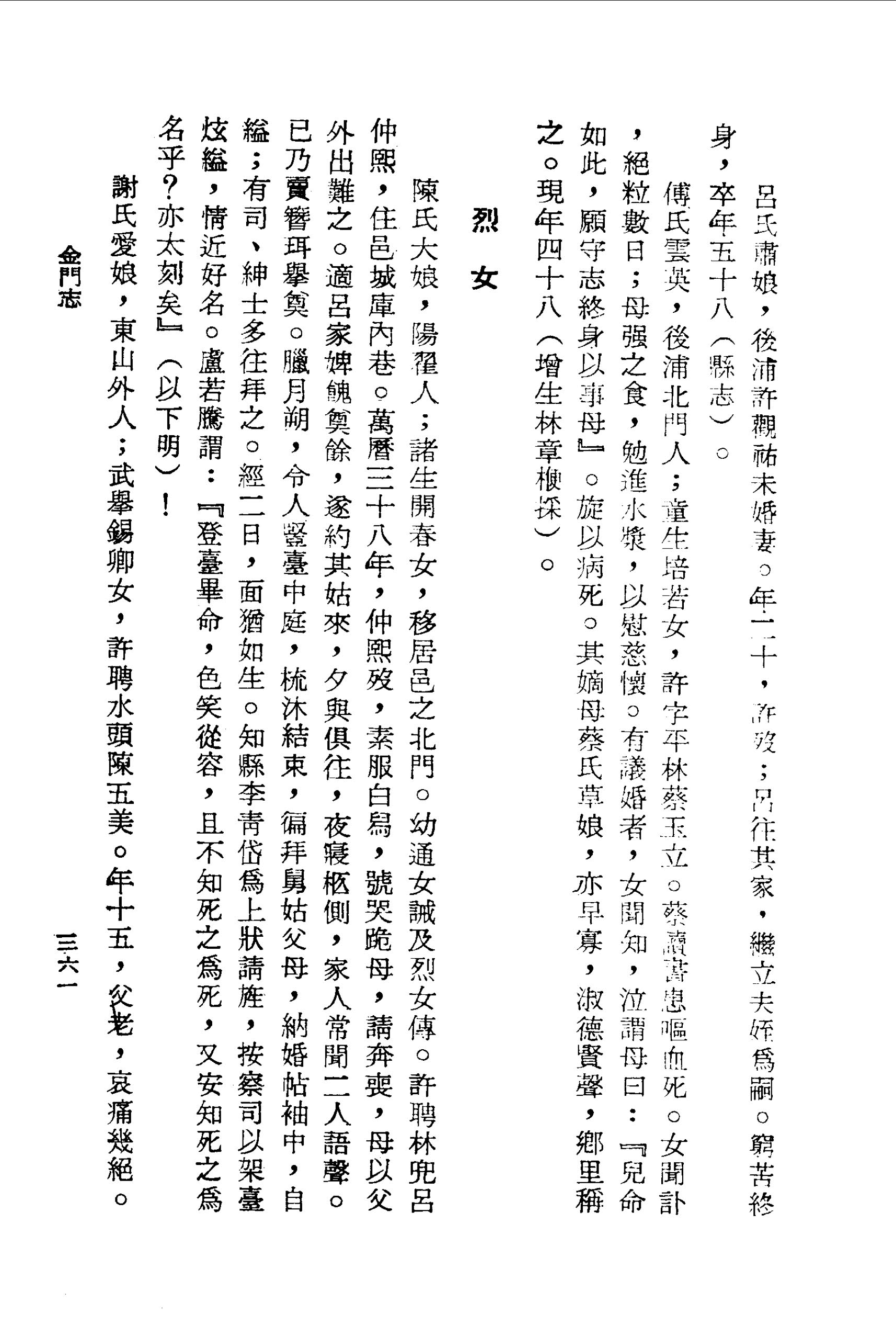 傅氏雲英,後浦北門人;童生培若女,許字平林蔡玉立。蔡讀書患嘔血死。女聞訃,絕粒數日;母強之食,勉進水漿,以慰慈懷。有議婚者,女聞知,泣謂母曰:『兒命如此,願守志終身以事母』。旋以病死。其嫡母蔡氏草娘,亦早寡,淑德賢聲,鄉里稱之。現年四十八(增生林章楩採)。