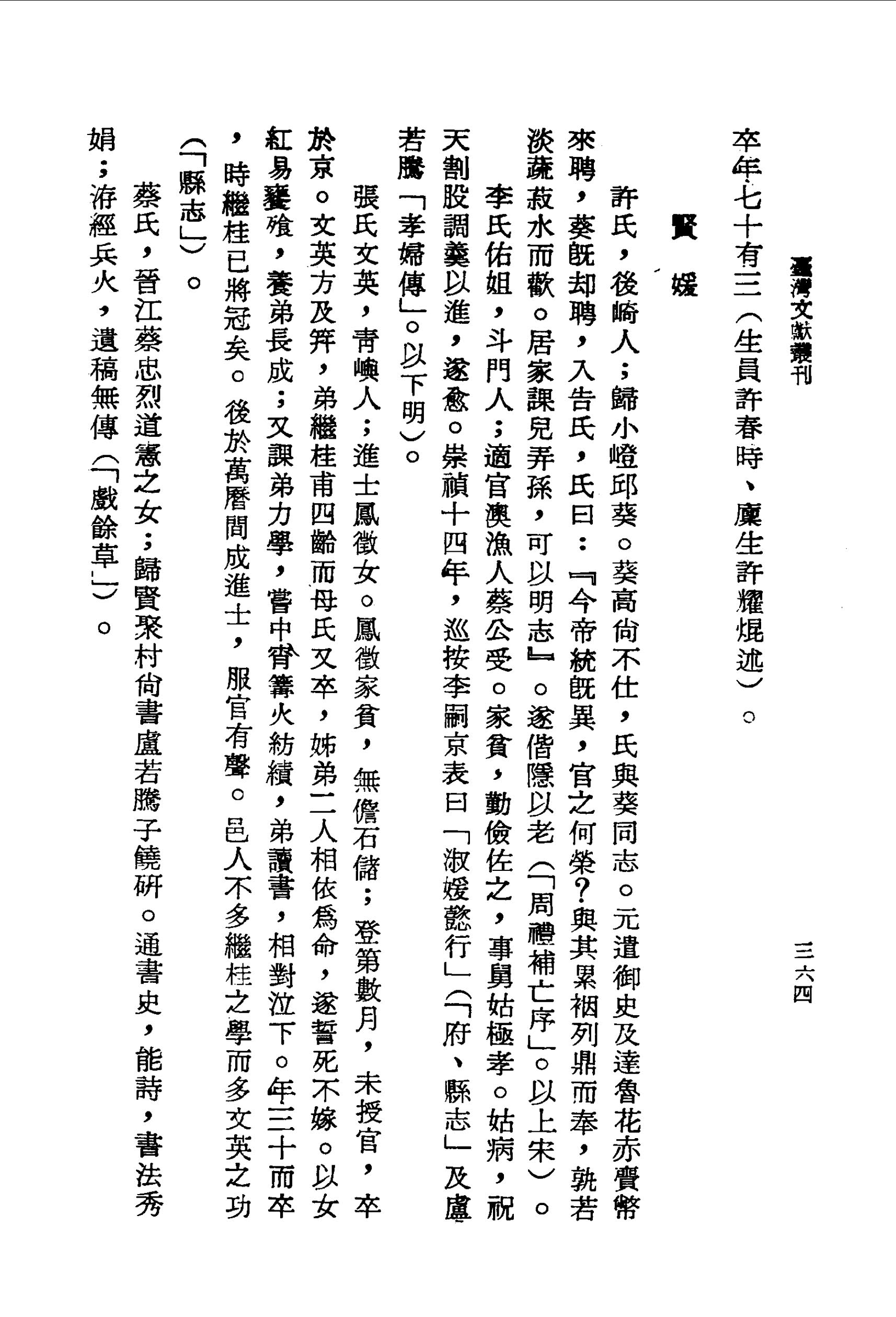 李氏佑姐,斗門人;適官澳漁人蔡公受。家貧,勤儉佐之,事舅姑極孝。姑病,祝天割股調羹以進,遂愈。崇禎十四年,巡按李嗣京表曰「淑媛懿行」(「府、縣志」及盧若騰「孝婦傳」。以下明)。
