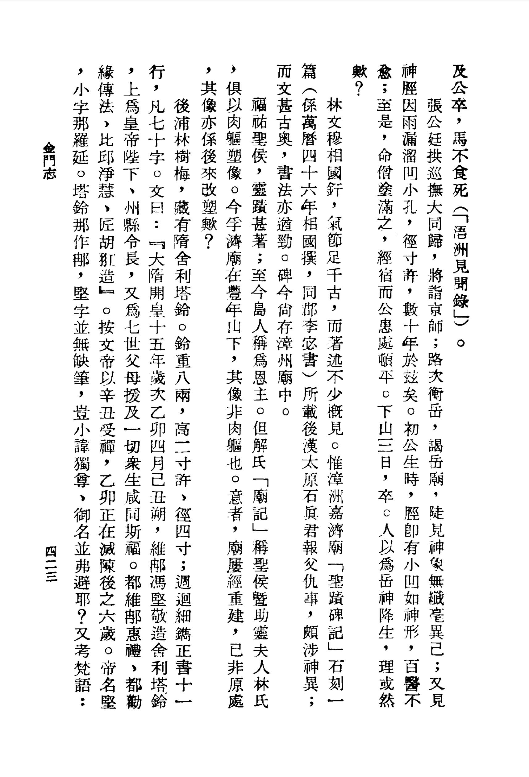 張公廷拱巡撫大同歸,將詣京師;路次衡岳,謁岳廟,陡見神象無纖毫異己;又見神脛因雨漏溜凹小孔,徑寸許,數十年於茲矣。初公生時,脛即有小凹如神形,百醫不愈;至是,命僧塗滿之,經宿而公患處頓平。下山三日,卒。人以為岳神降生,理或然歟?