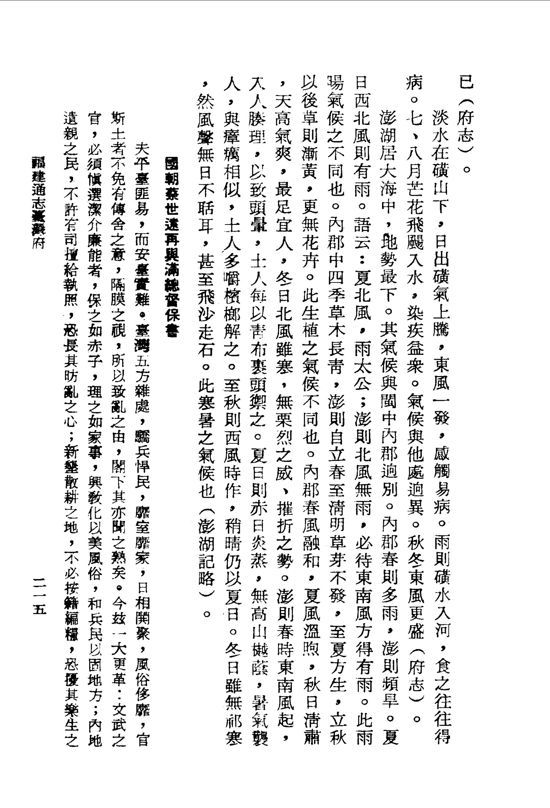 淡水在磺山下,日出磺氣上騰,東風一發,感觸易病.雨則磺水入河,食之往往得病.七、八月芒花飛颺入水,染疾益眾.氣候與他處迥異.秋冬東風更盛(府志)。