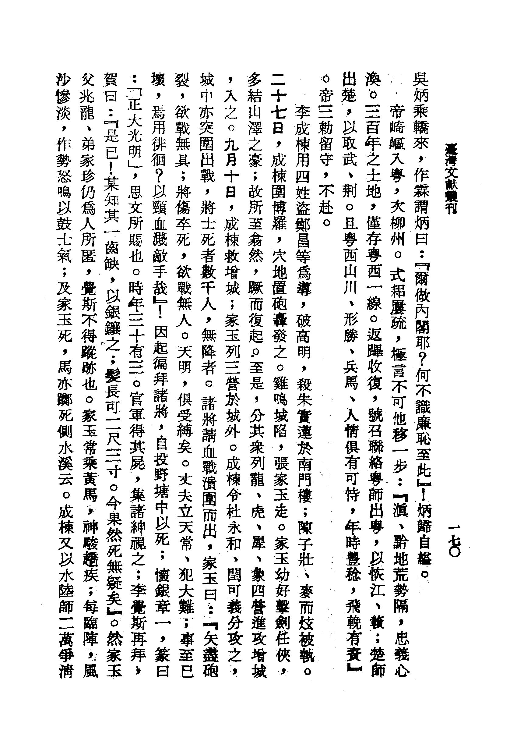 輔臣吳炳以痁疾留武岡,被逼薙髮。兵部尚書傅作霖見獲不屈,械項遊營;遇內閣吳炳乘轎來,作霖謂炳曰:『爾做內閣耶?何不識廉恥至此』!炳歸自縊。