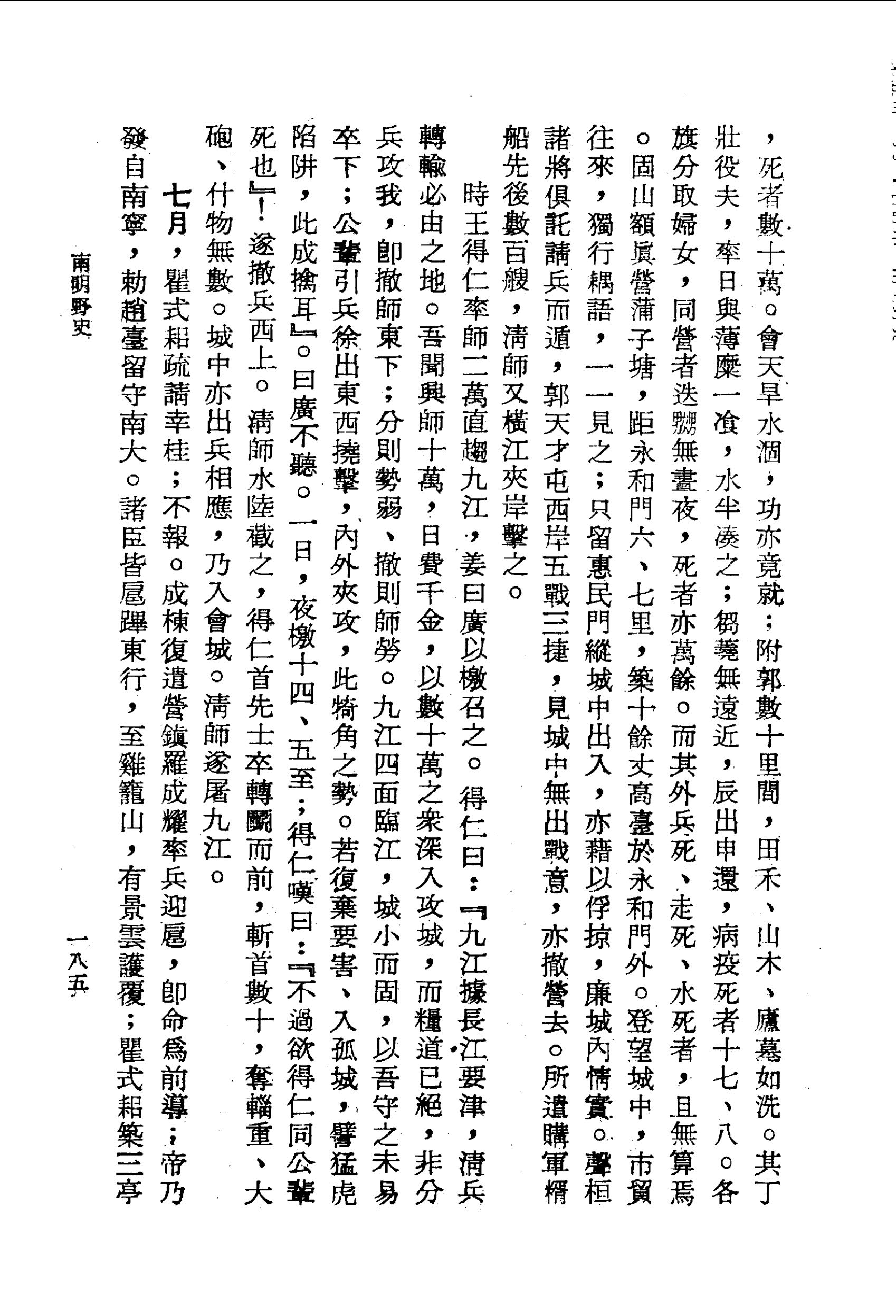 其丁壯役夫,率日與薄糜一湌,水半湊之;芻蕘無遠近,辰出申還,病疫死者十七、八。各旗分取婦女,同營者迭嬲無晝夜,死者亦萬餘。而其外兵死、走死、水死者,且無算焉。