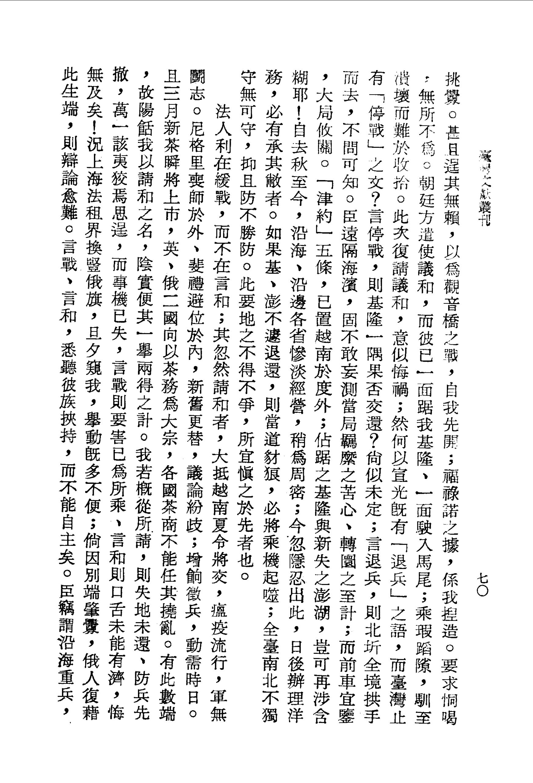 法人利在緩戰,而不在言和;其忽然請和者,大抵越南夏令將交,瘟疫流行,軍無鬥志。尼格里喪師於外、斐禮避位於內,新舊更替,議論紛歧;增餉徵兵,動需時日。且三月新茶瞬將上市,英、俄二國向以茶務為大宗,各國茶商不能任其撓亂。